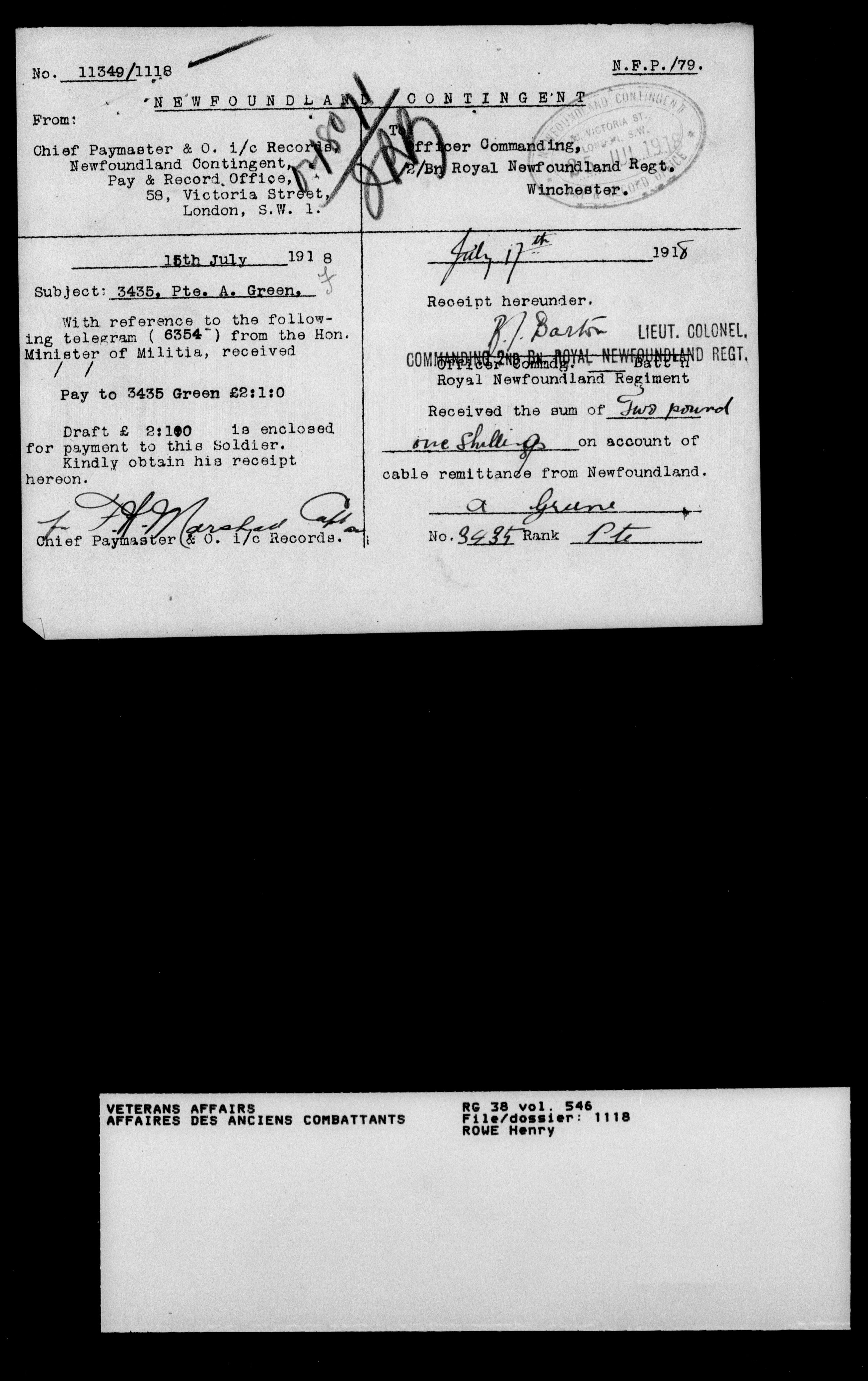 Royal Newfoundland Regiment service files : T-18081