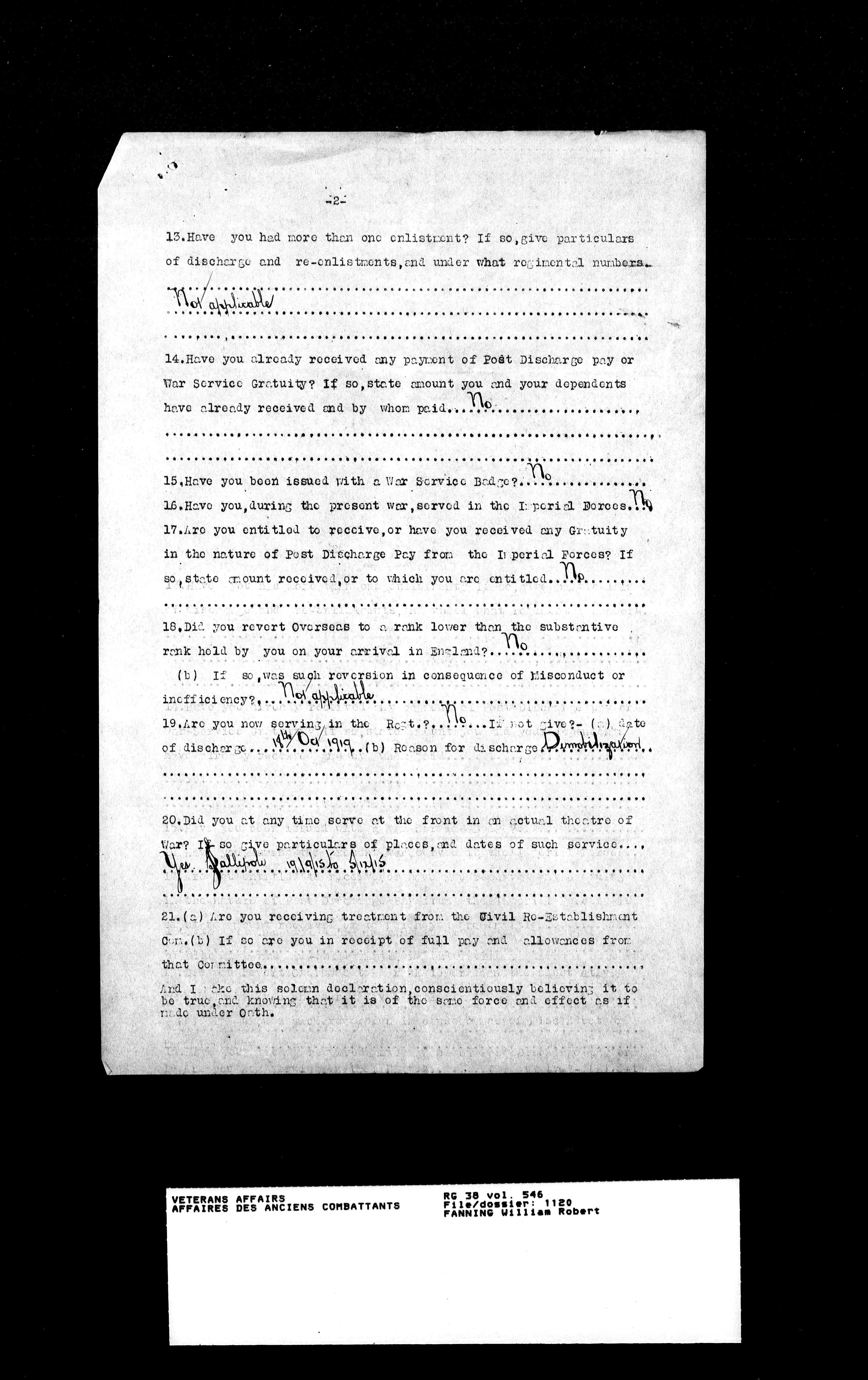 Military service files for members of the Royal Newfoundland Regiment and bandsmen and the Newfoundland Forestry Corps (1914-1919) - 18082