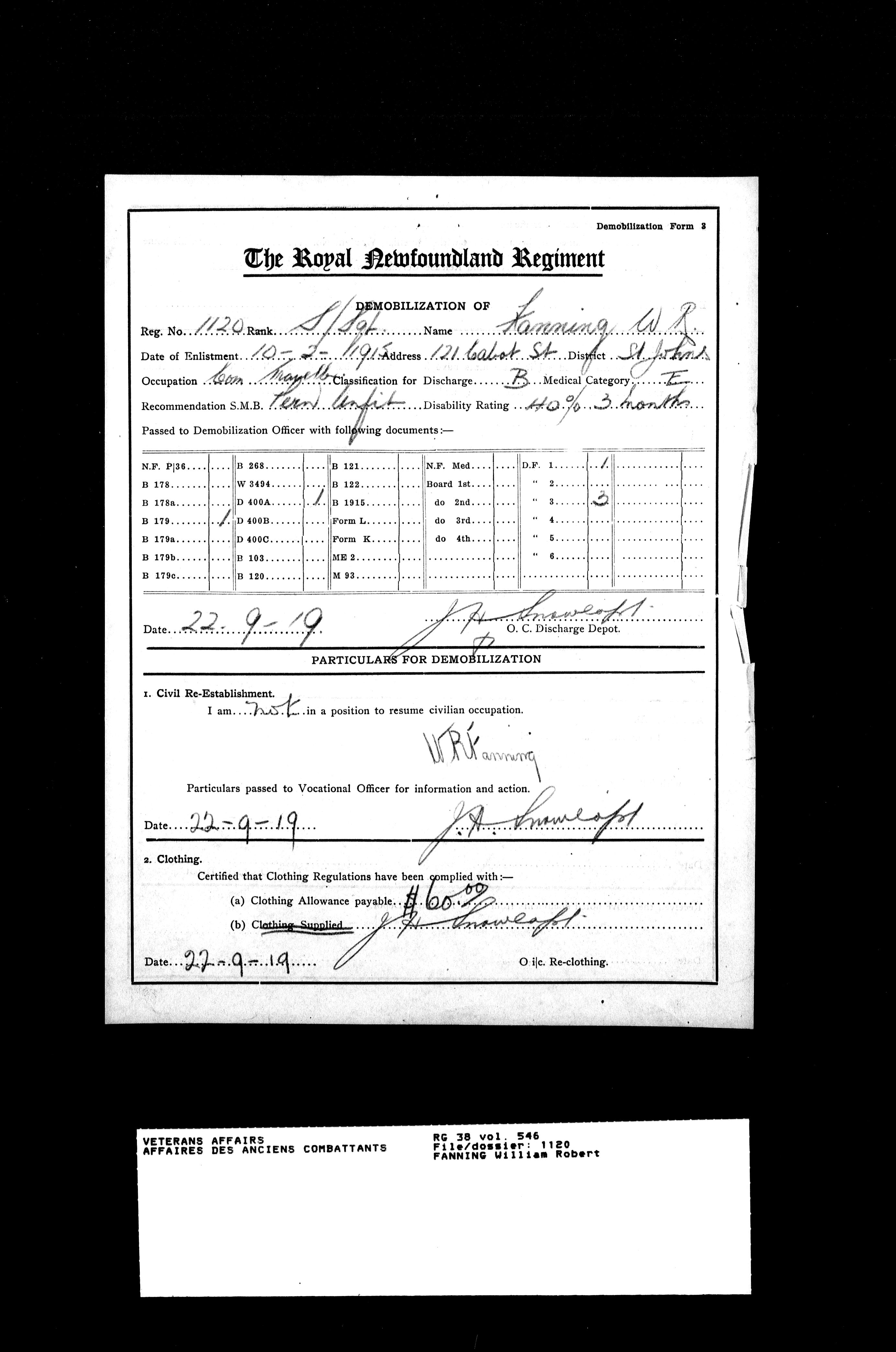 Military service files for members of the Royal Newfoundland Regiment and bandsmen and the Newfoundland Forestry Corps (1914-1919) - 18082