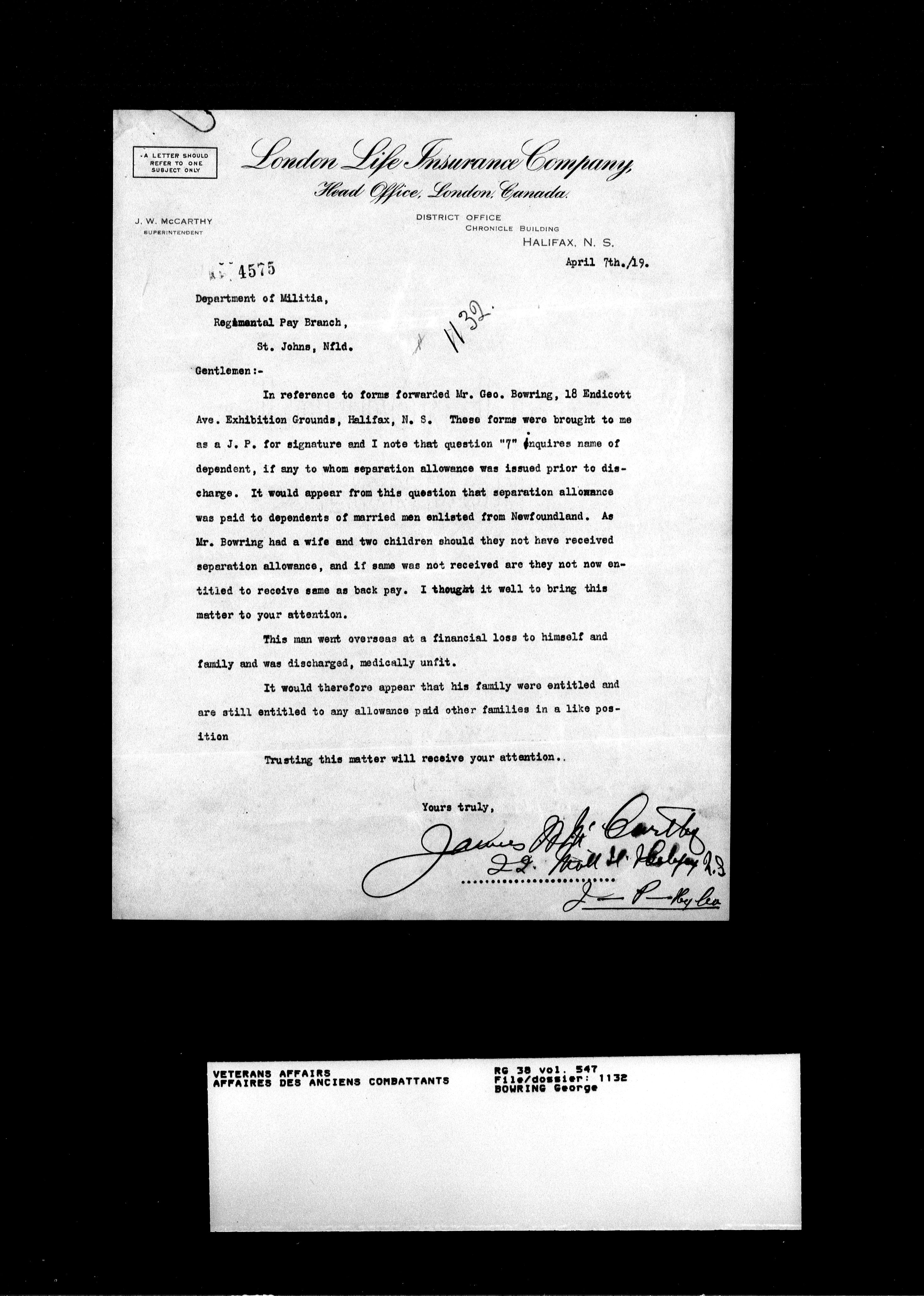 Military service files for members of the Royal Newfoundland Regiment and bandsmen and the Newfoundland Forestry Corps (1914-1919) - 18082