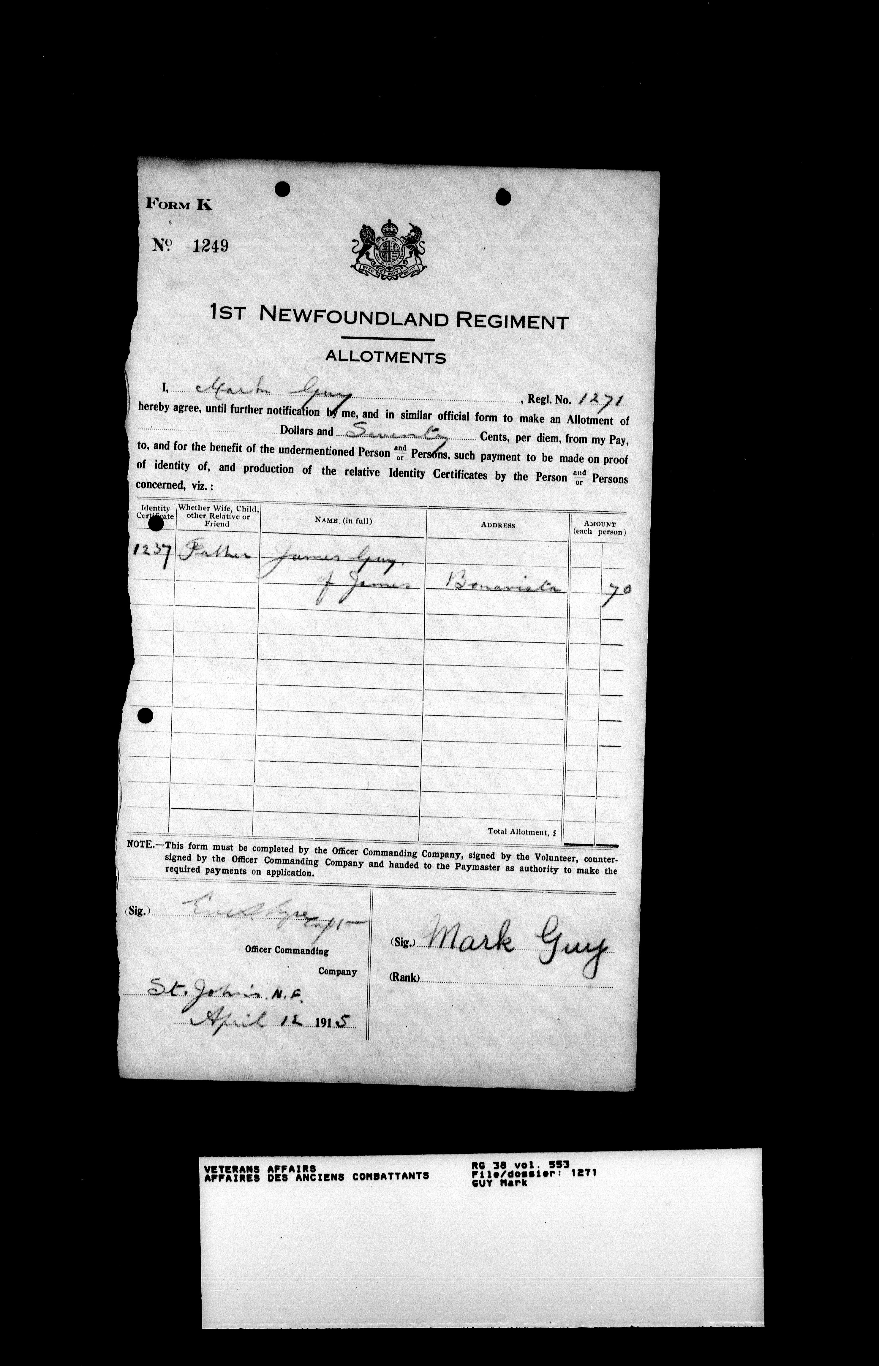 Military service files for members of the Royal Newfoundland Regiment and bandsmen and the Newfoundland Forestry Corps (1914-1919) - 18089