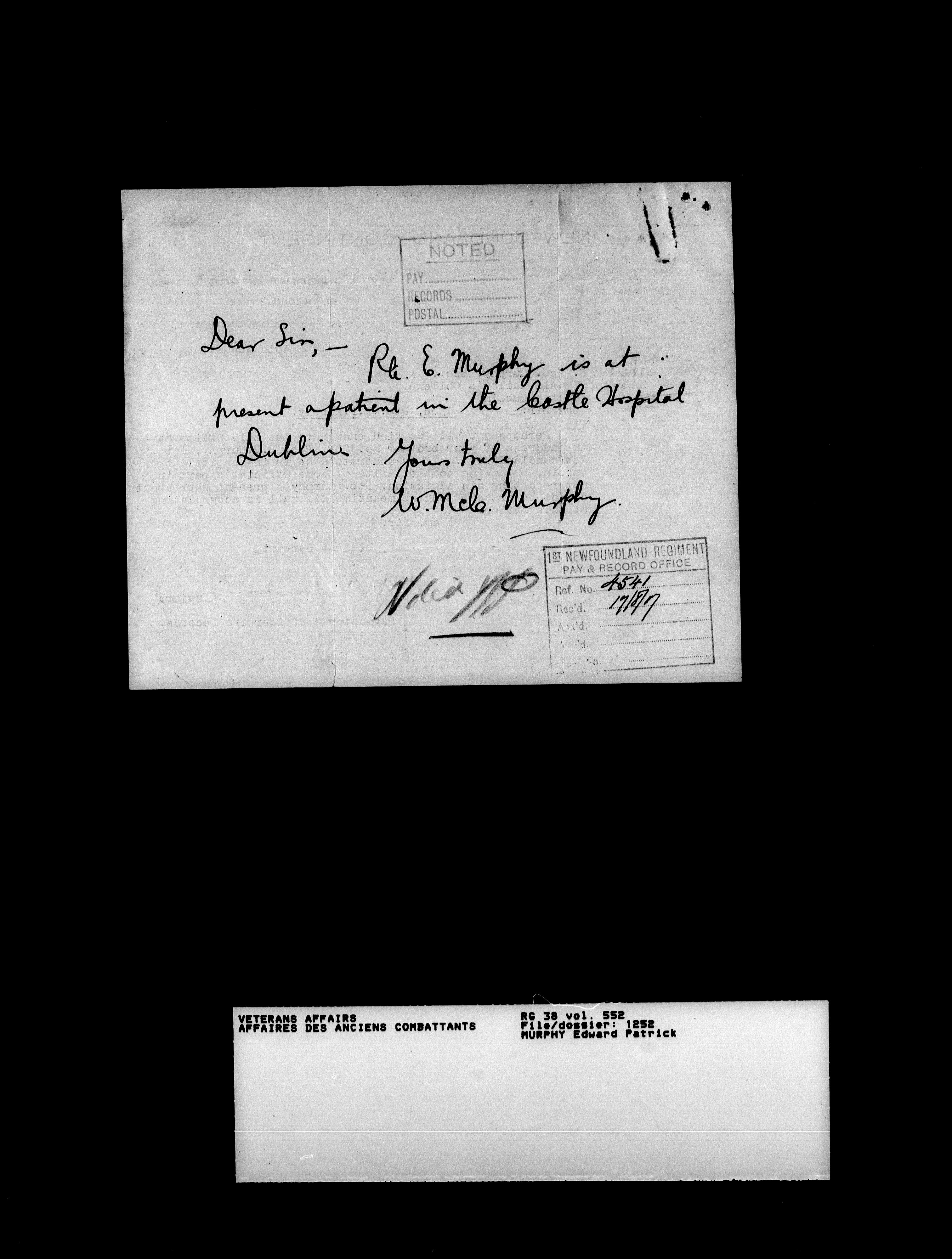 Military service files for members of the Royal Newfoundland Regiment and bandsmen and the Newfoundland Forestry Corps (1914-1919) - 18089
