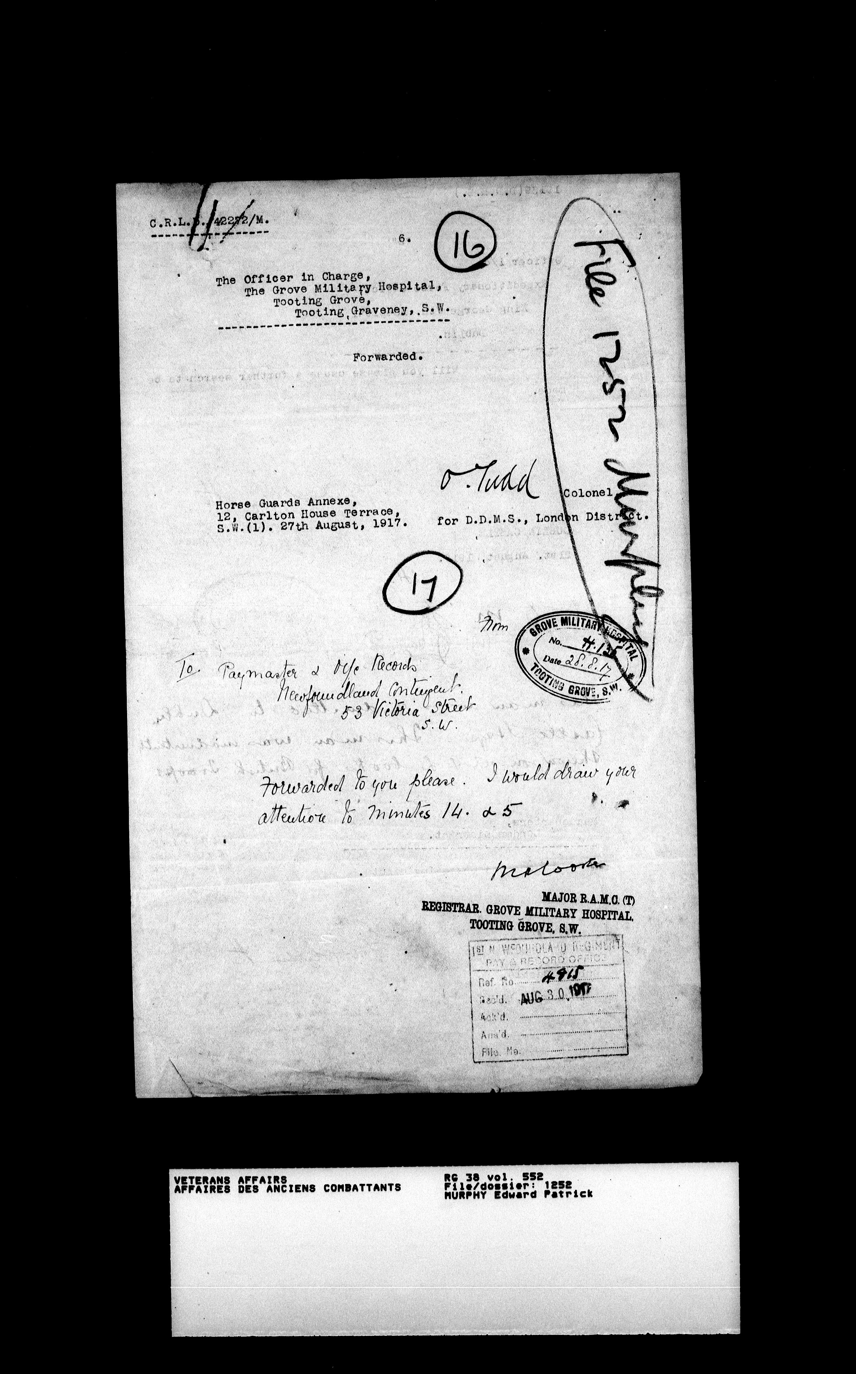 Military service files for members of the Royal Newfoundland Regiment and bandsmen and the Newfoundland Forestry Corps (1914-1919) - 18089