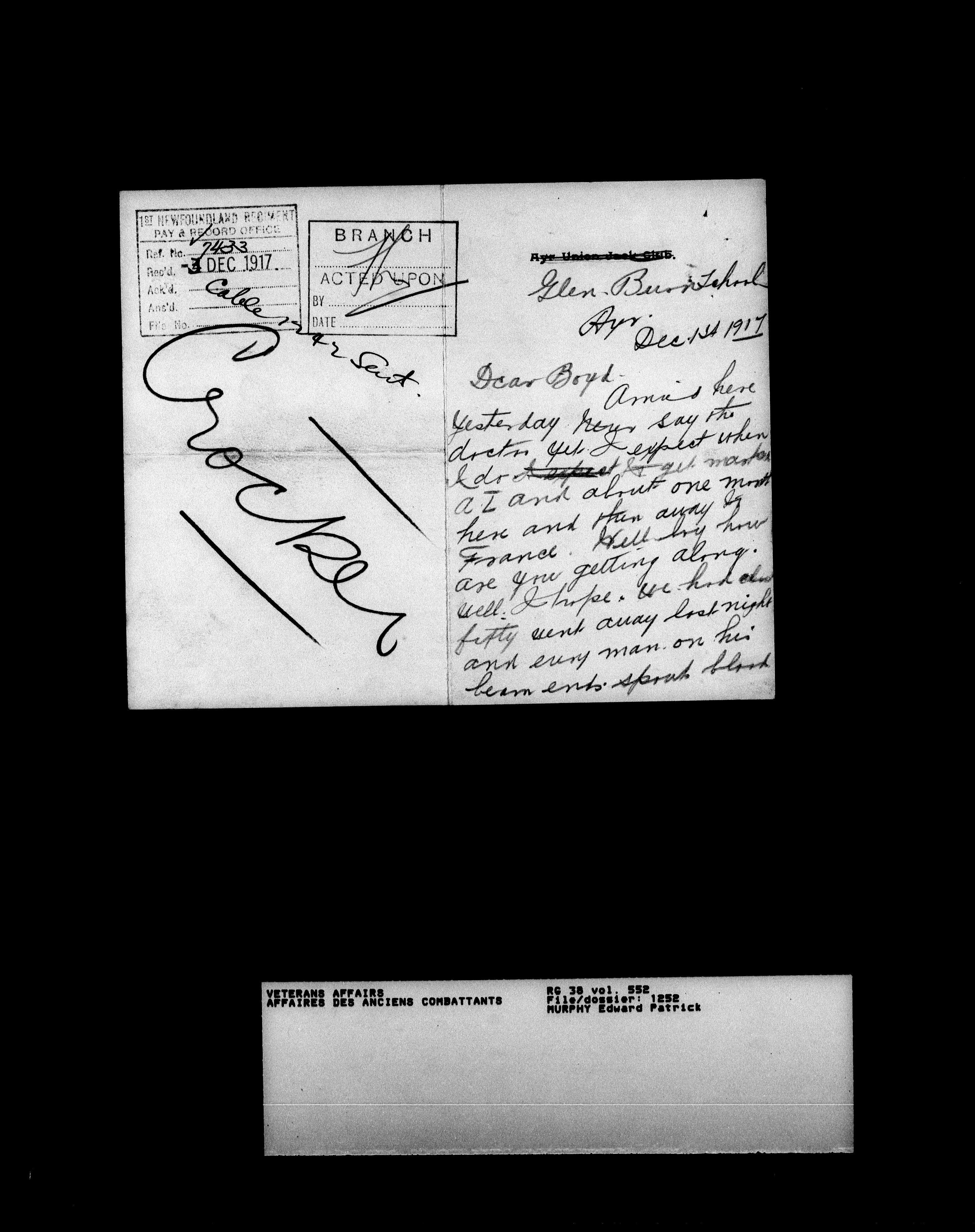 Military service files for members of the Royal Newfoundland Regiment and bandsmen and the Newfoundland Forestry Corps (1914-1919) - 18089