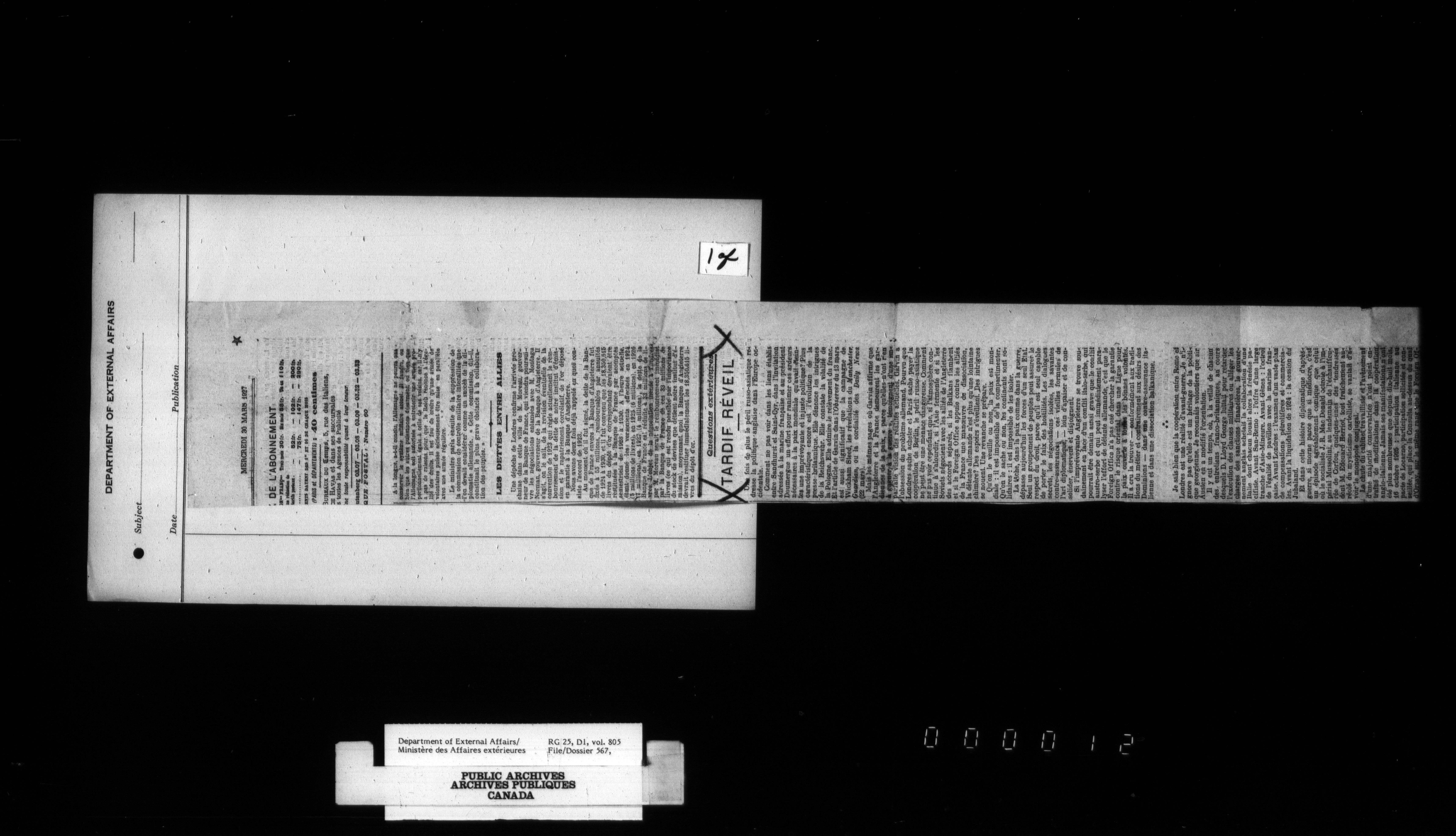 Department of External Affairs : Office of the Under-Secretary of State for External Affairs - 1809