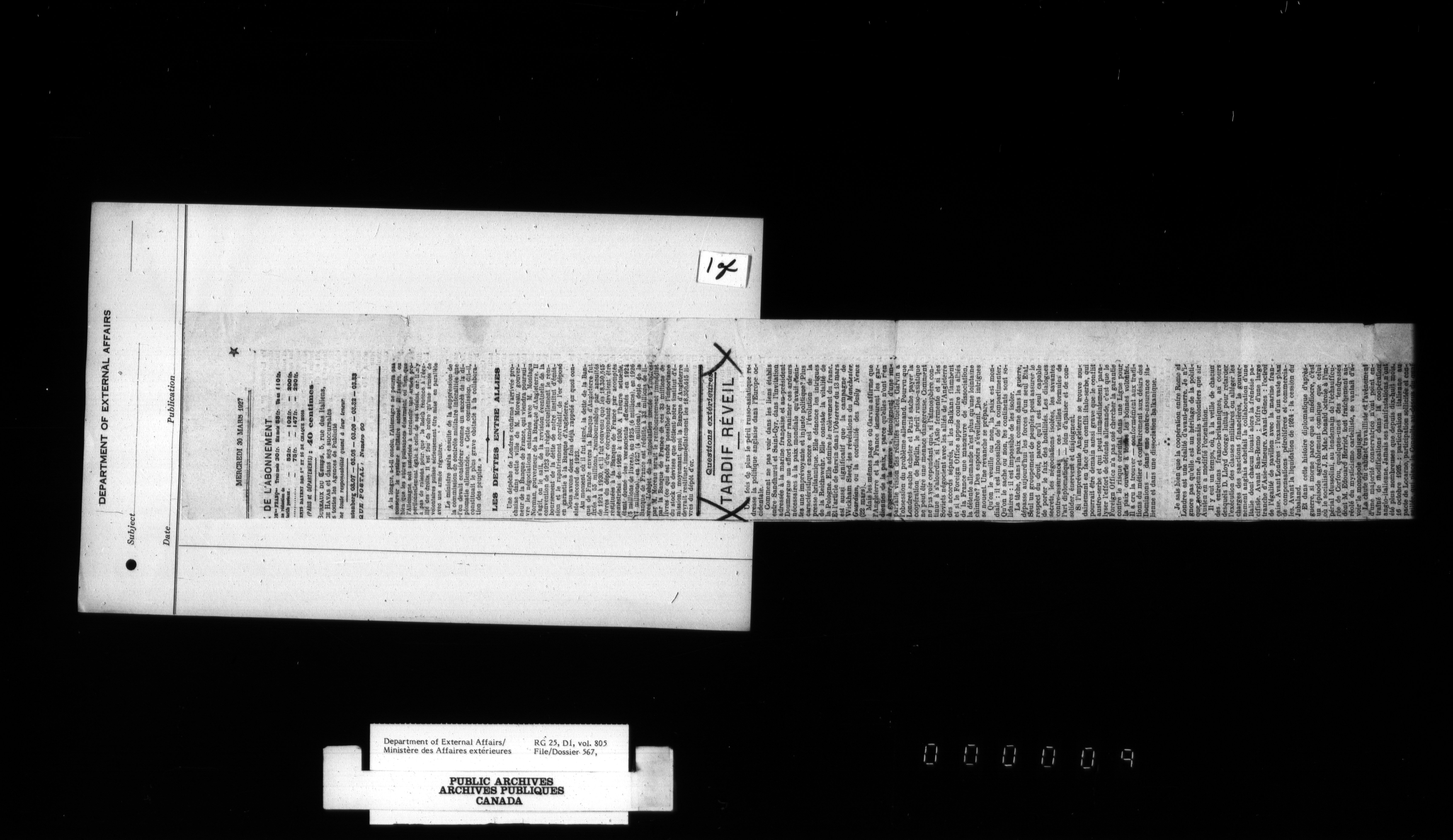 Department of External Affairs : Office of the Under-Secretary of State for External Affairs - 1809
