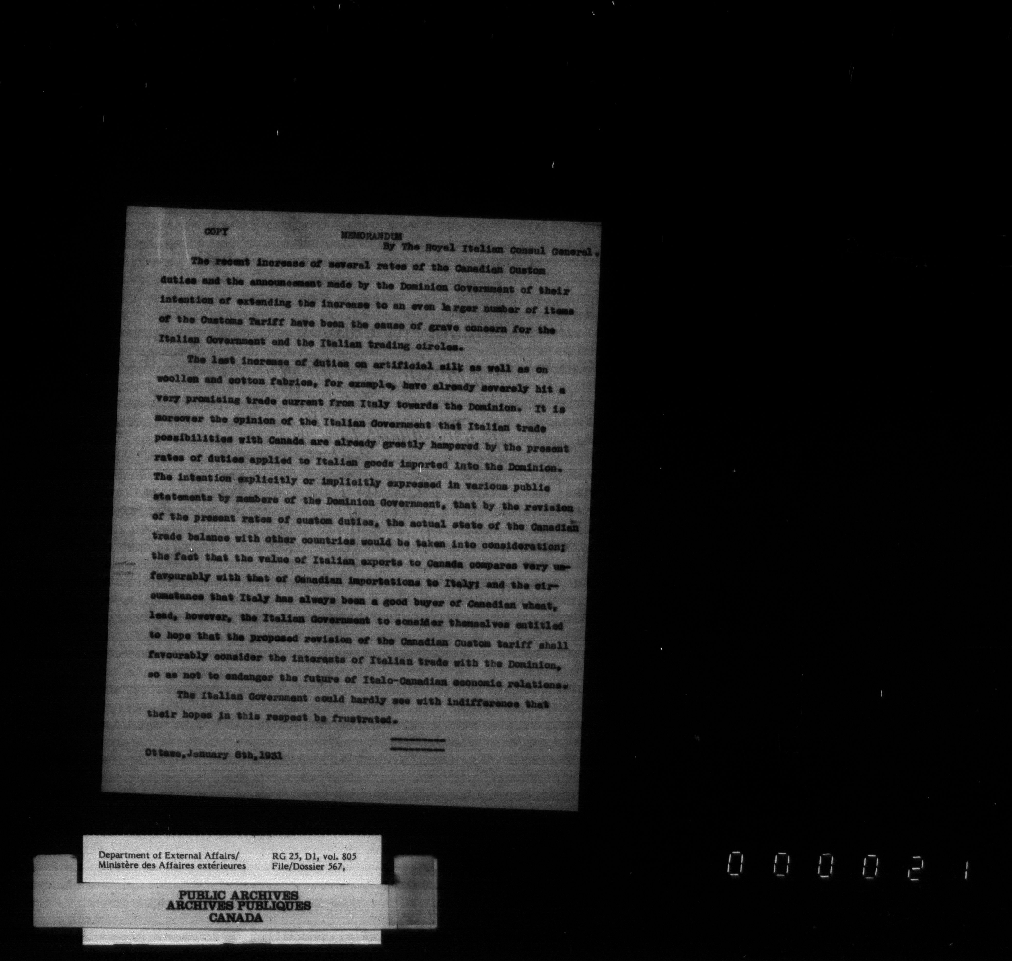 Department of External Affairs : Office of the Under-Secretary of State for External Affairs - 1809