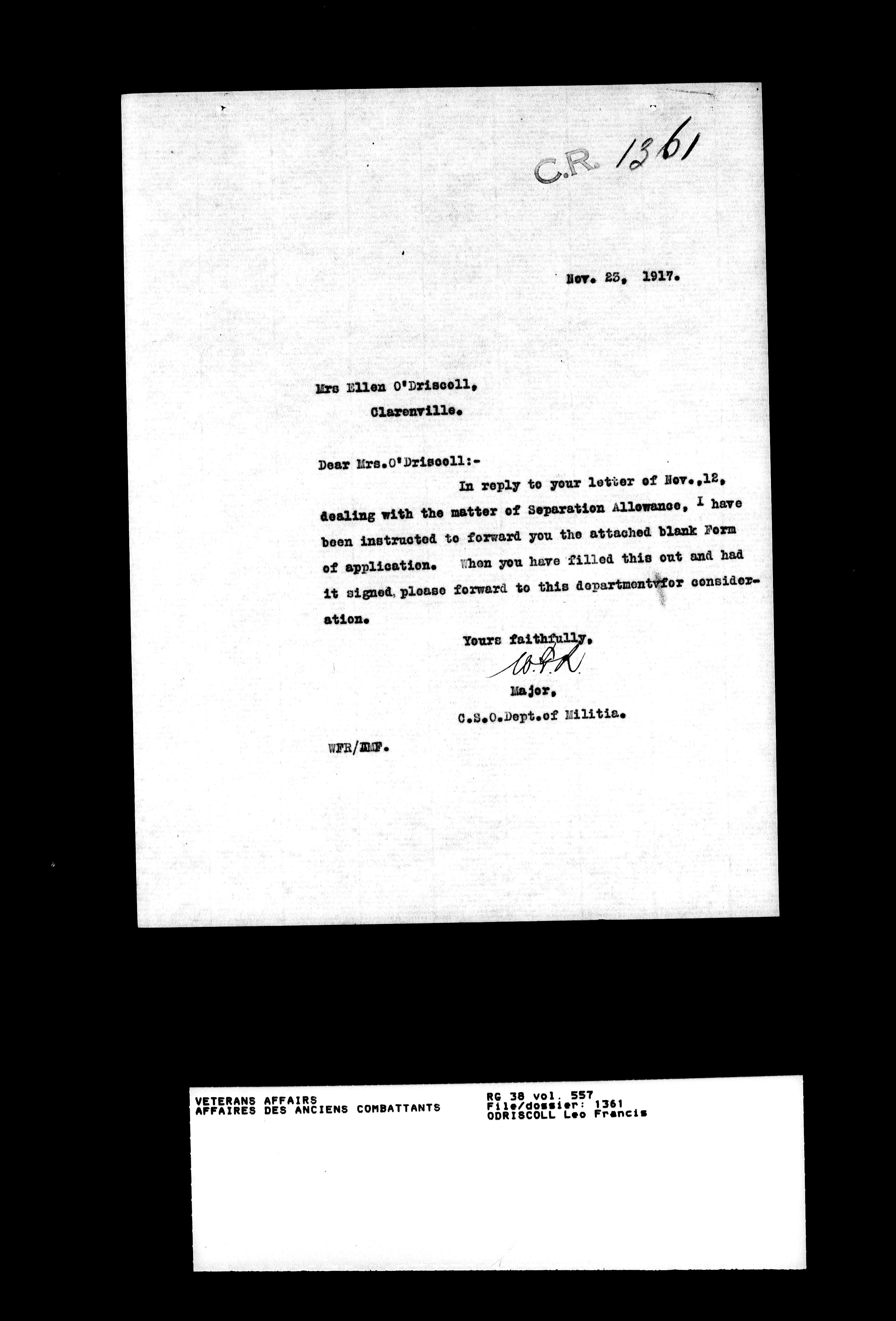 Military service files for members of the Royal Newfoundland Regiment and bandsmen and the Newfoundland Forestry Corps (1914-1919) - 18094