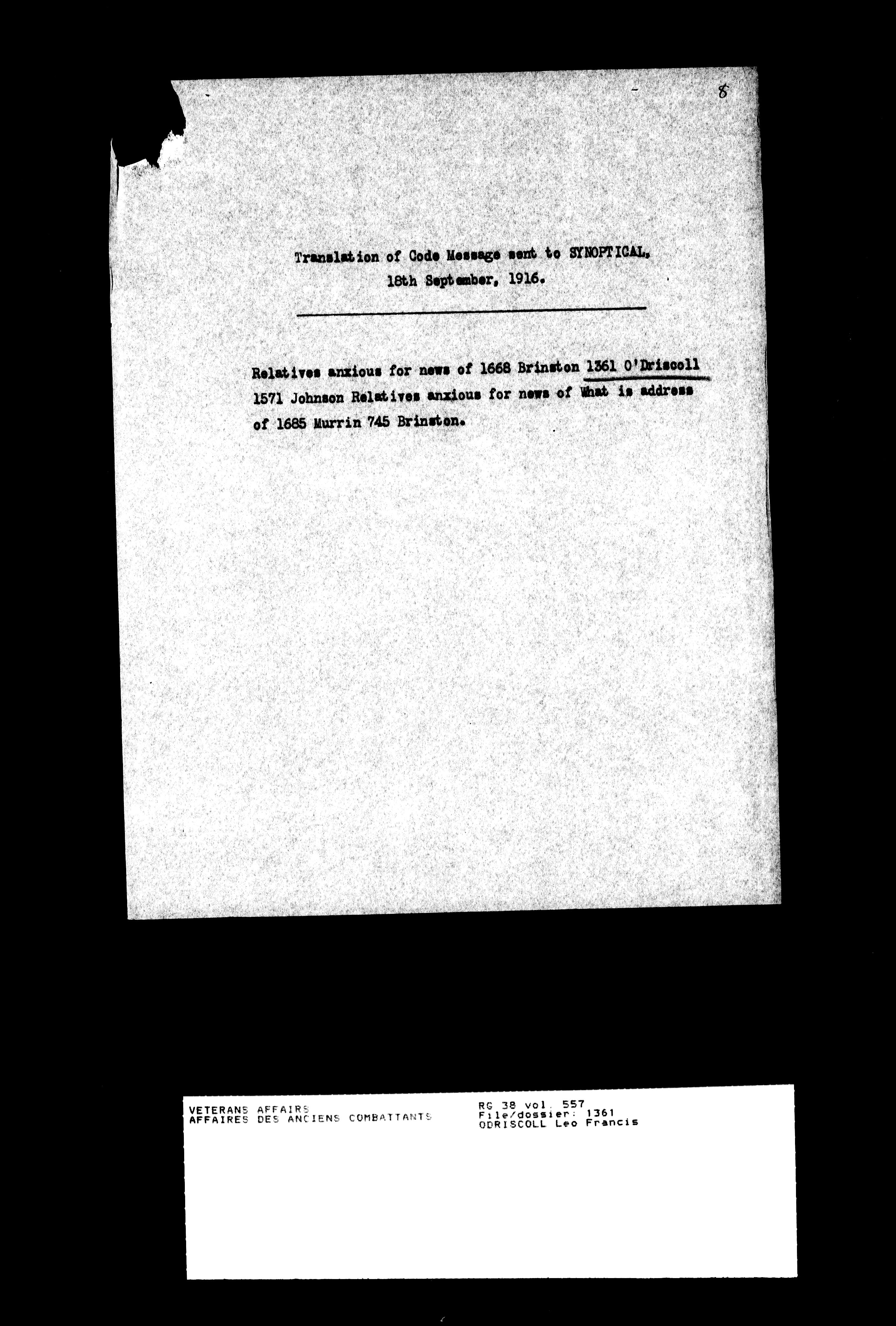 Military service files for members of the Royal Newfoundland Regiment and bandsmen and the Newfoundland Forestry Corps (1914-1919) - 18094