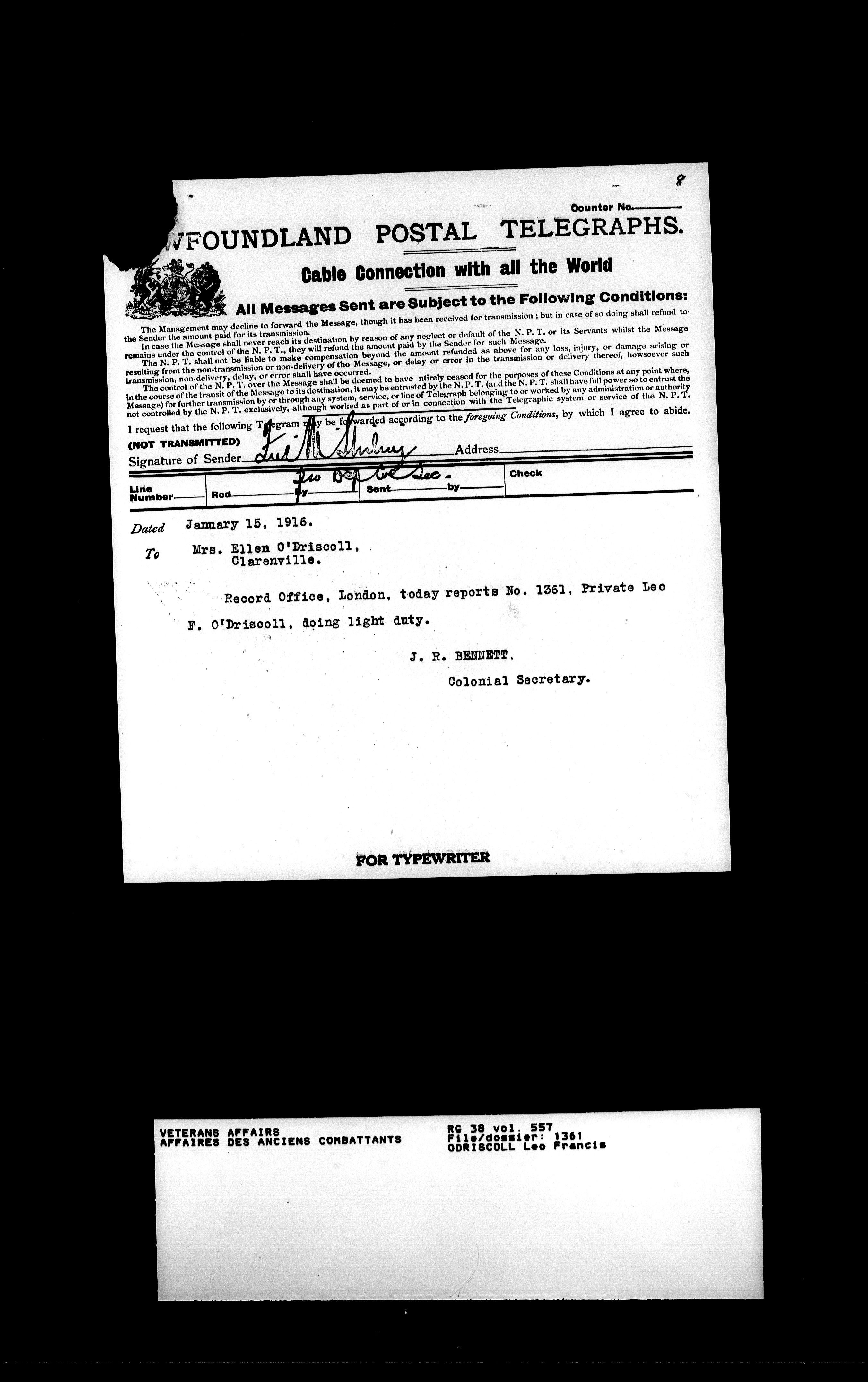 Military service files for members of the Royal Newfoundland Regiment and bandsmen and the Newfoundland Forestry Corps (1914-1919) - 18094