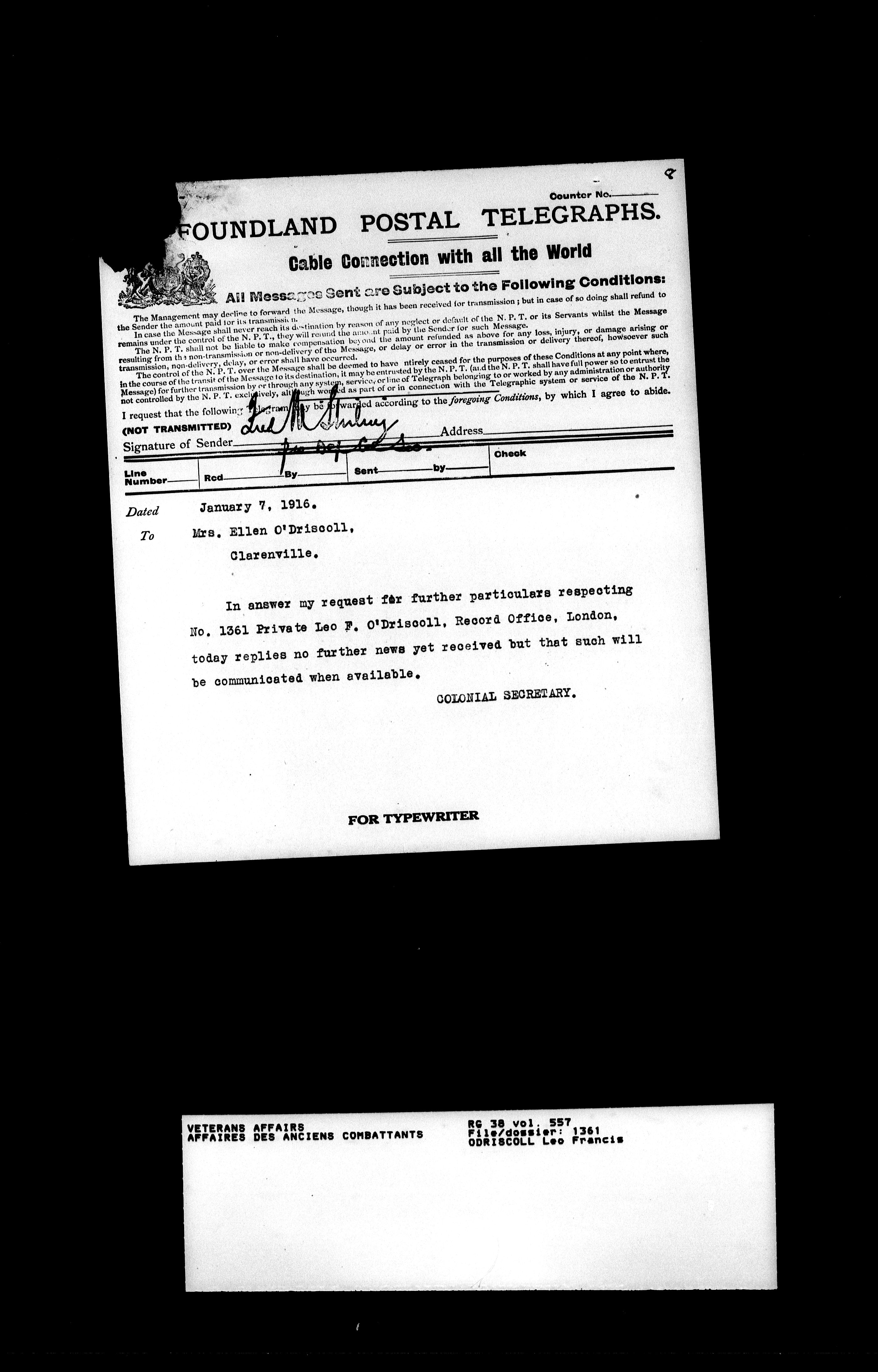 Military service files for members of the Royal Newfoundland Regiment and bandsmen and the Newfoundland Forestry Corps (1914-1919) - 18094