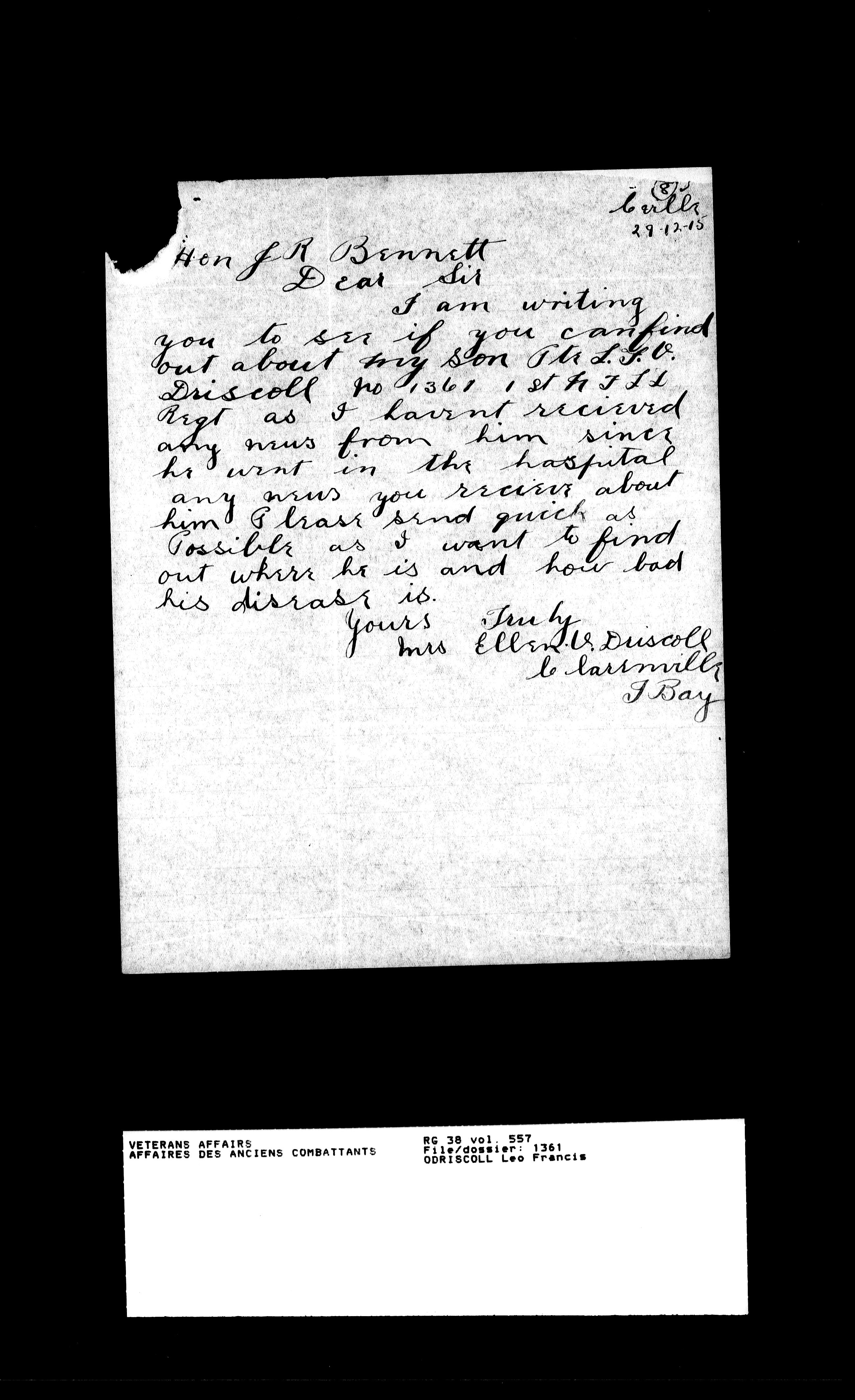 Military service files for members of the Royal Newfoundland Regiment and bandsmen and the Newfoundland Forestry Corps (1914-1919) - 18094