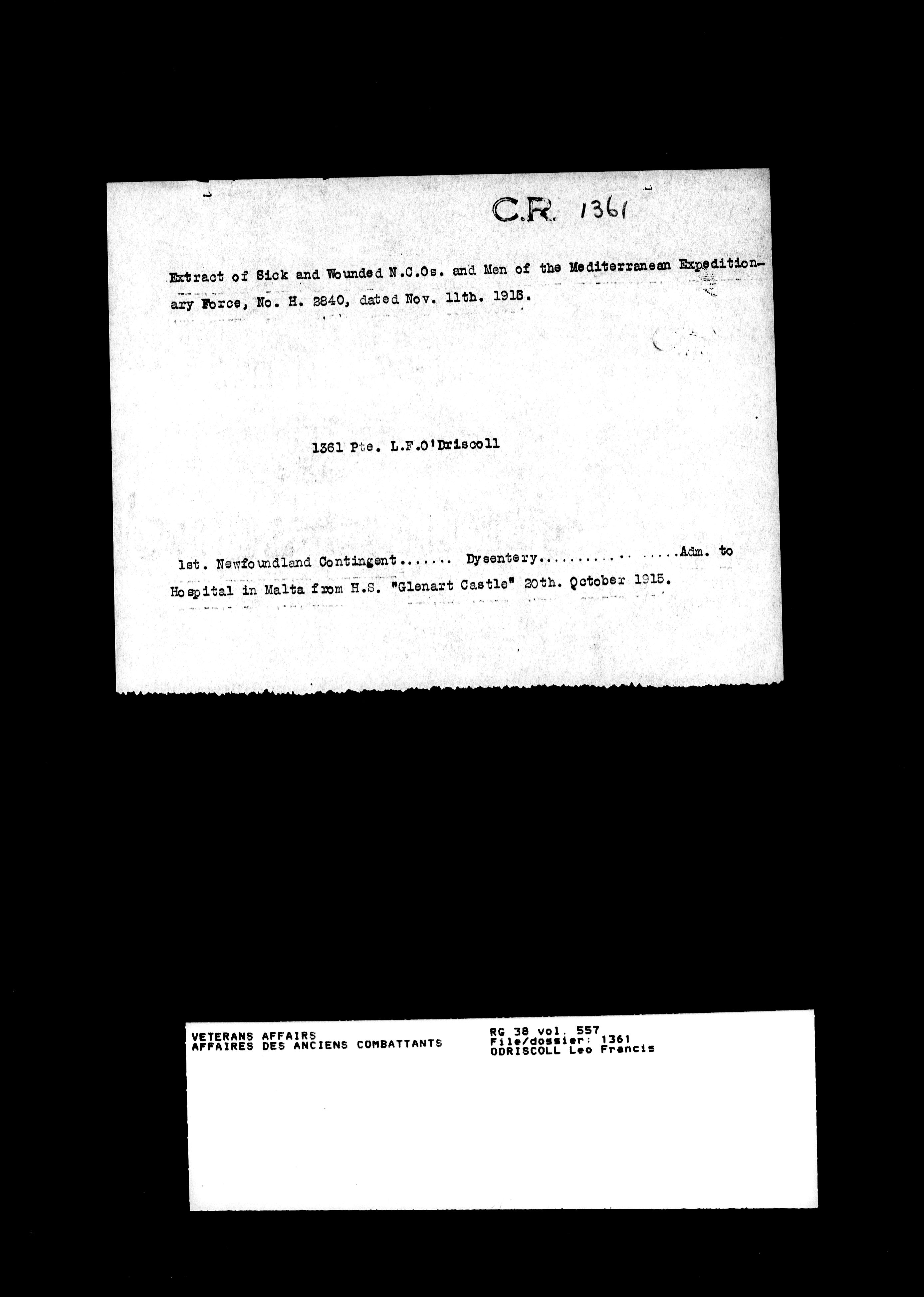 Military service files for members of the Royal Newfoundland Regiment and bandsmen and the Newfoundland Forestry Corps (1914-1919) - 18094