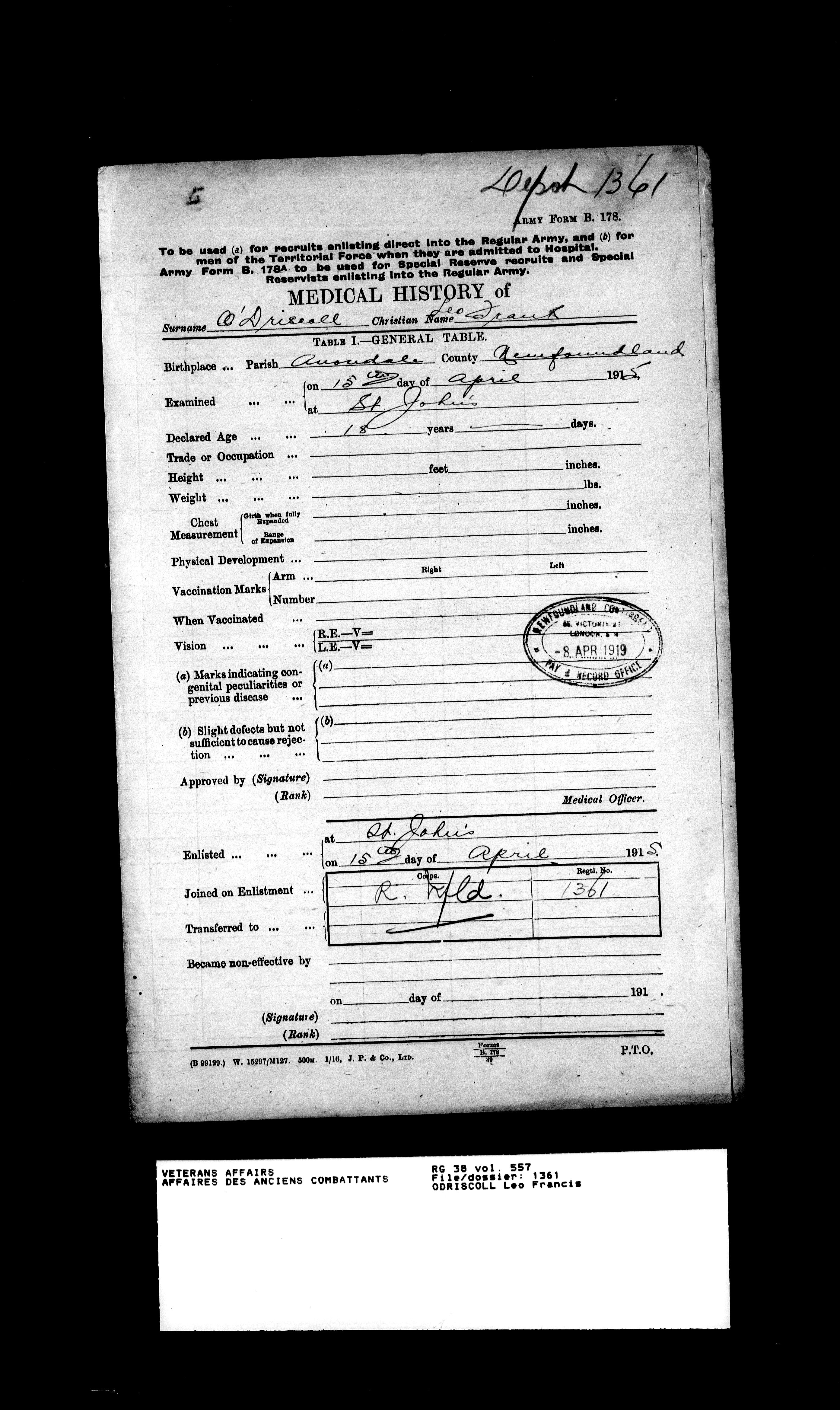 Military service files for members of the Royal Newfoundland Regiment and bandsmen and the Newfoundland Forestry Corps (1914-1919) - 18094