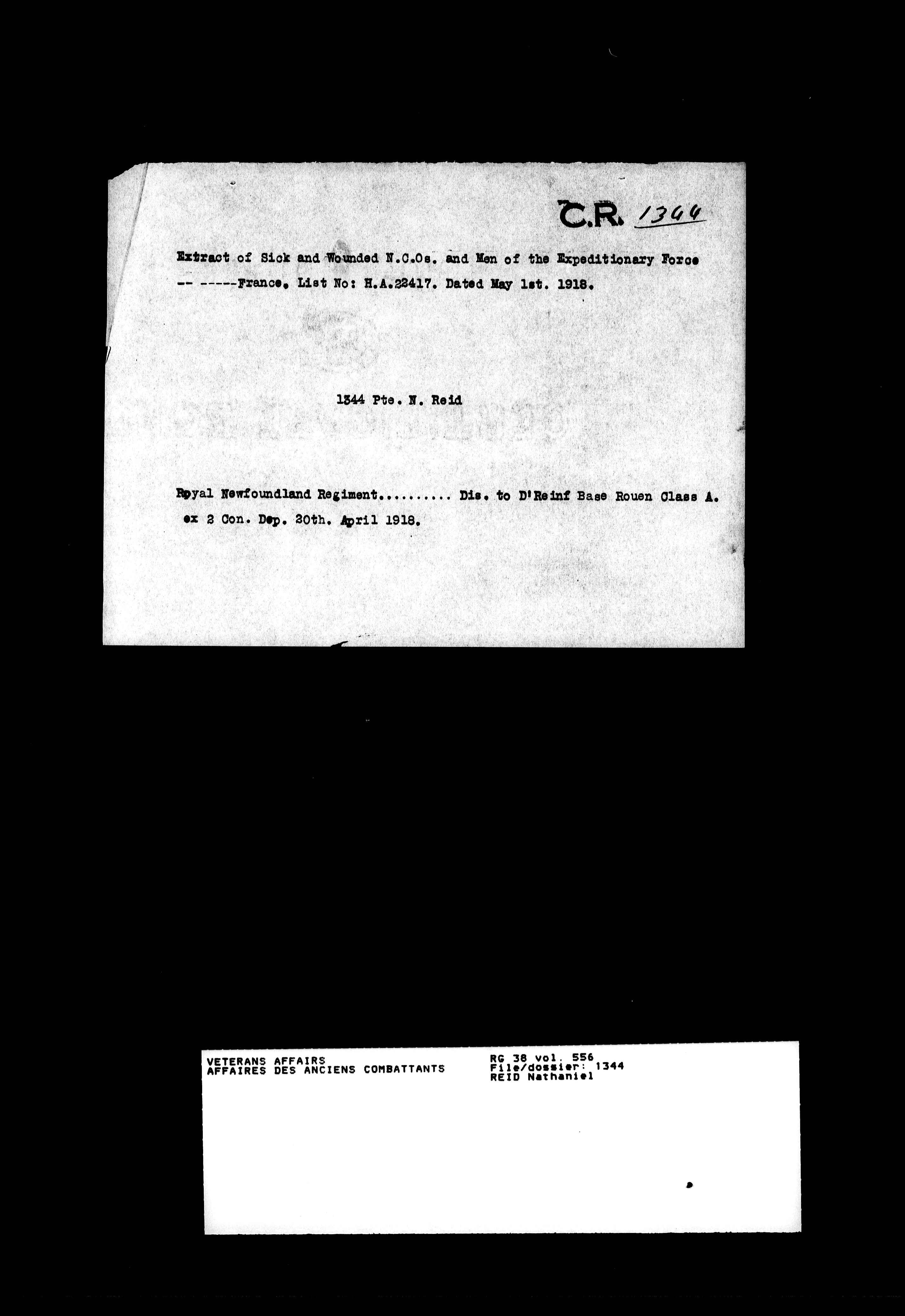 Military service files for members of the Royal Newfoundland Regiment and bandsmen and the Newfoundland Forestry Corps (1914-1919) - 18094