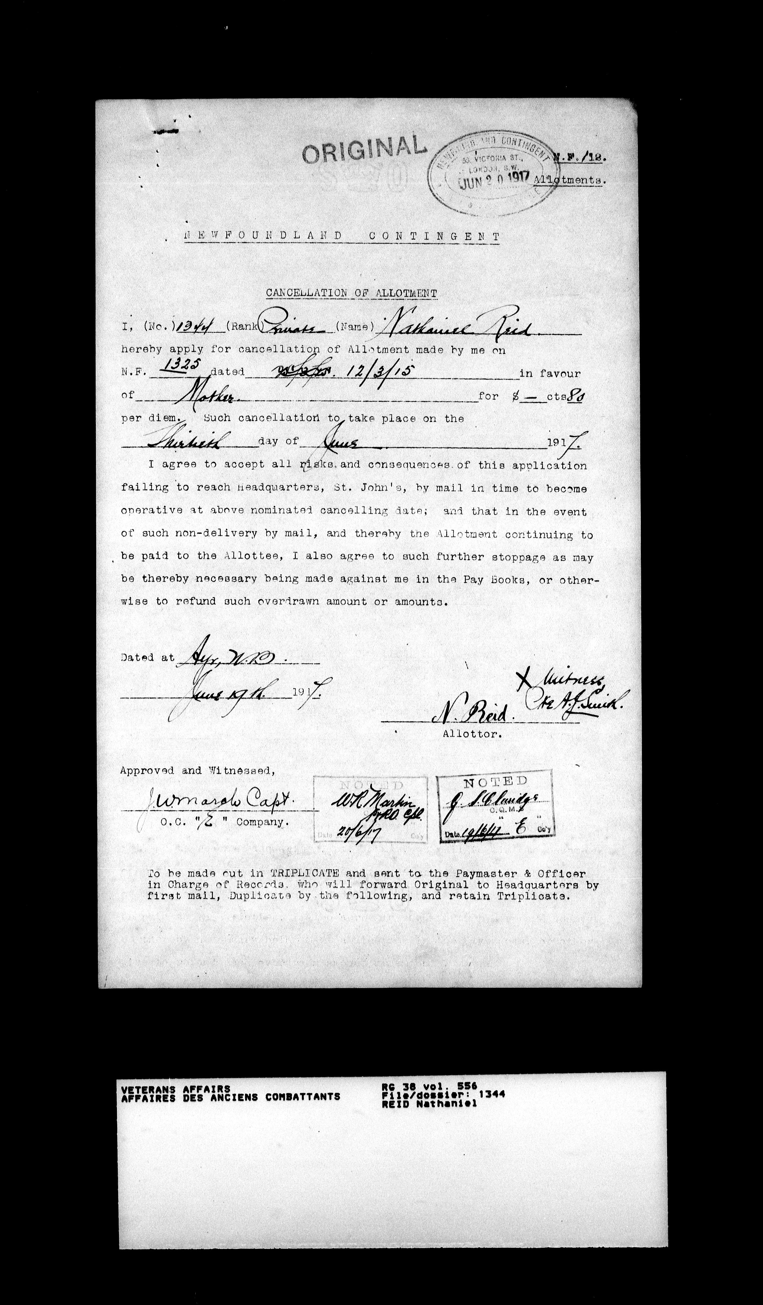 Military service files for members of the Royal Newfoundland Regiment and bandsmen and the Newfoundland Forestry Corps (1914-1919) - 18094