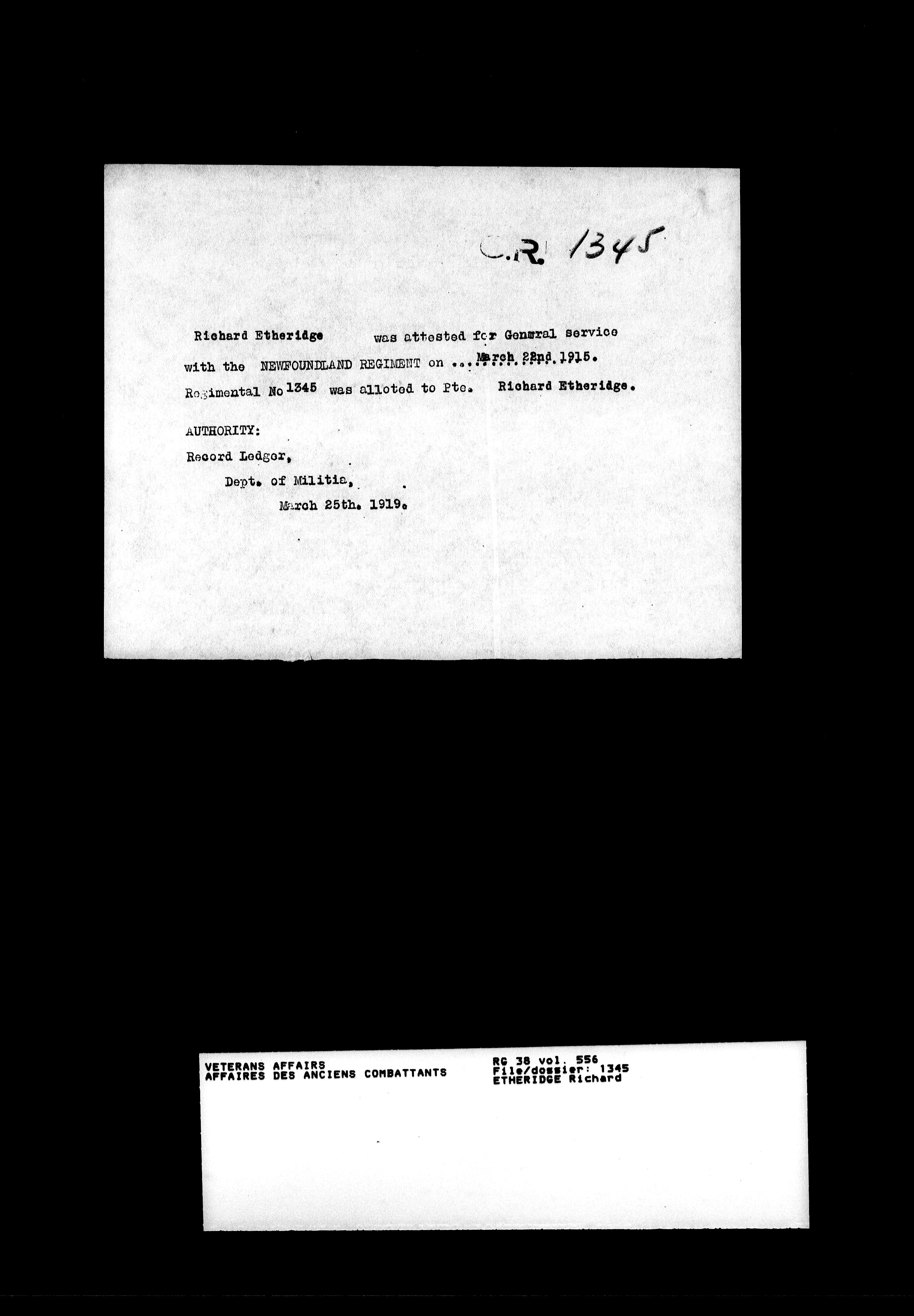 Military service files for members of the Royal Newfoundland Regiment and bandsmen and the Newfoundland Forestry Corps (1914-1919) - 18094