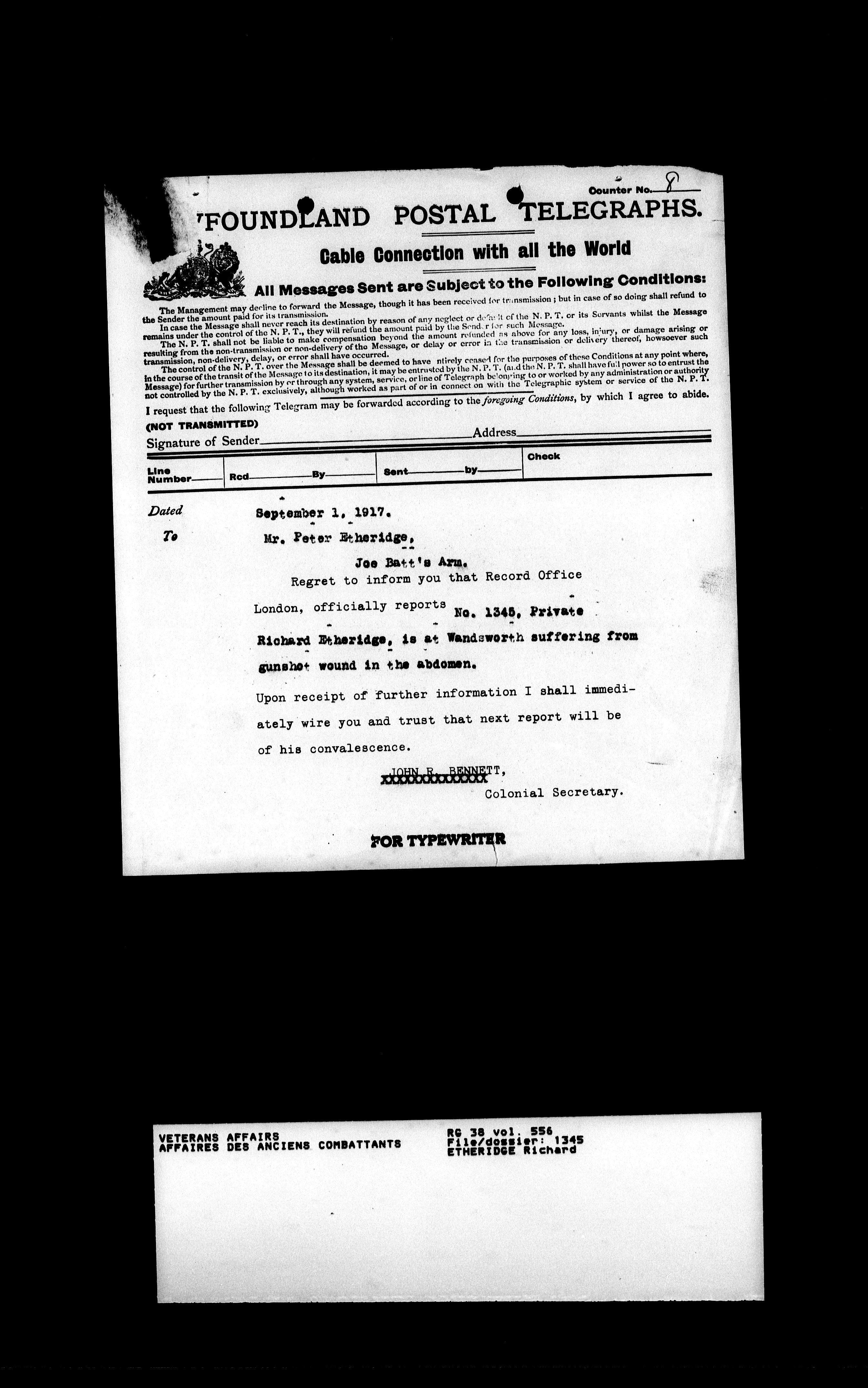 Military service files for members of the Royal Newfoundland Regiment and bandsmen and the Newfoundland Forestry Corps (1914-1919) - 18094