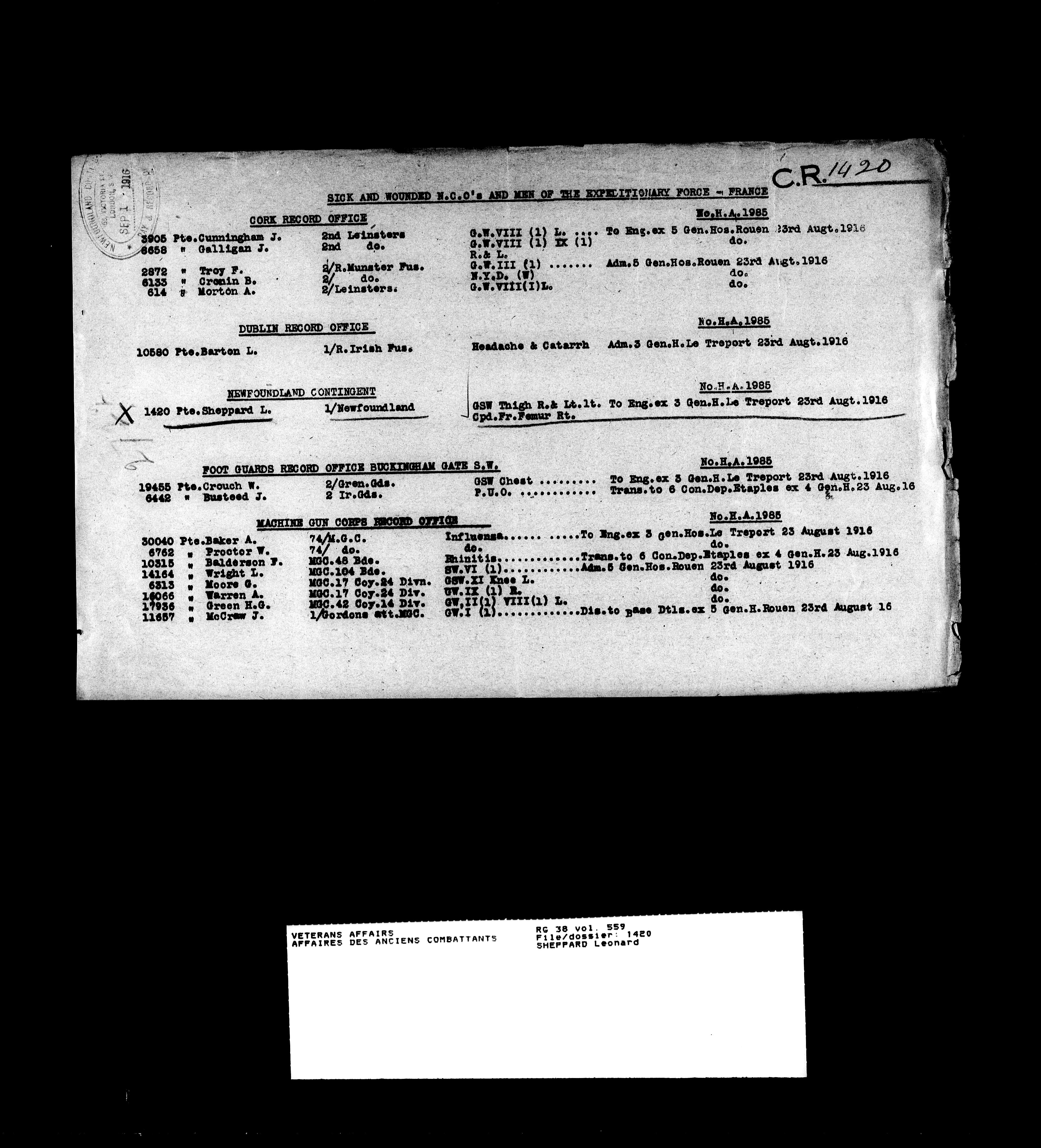 Military service files for members of the Royal Newfoundland Regiment and bandsmen and the Newfoundland Forestry Corps (1914-1919) - 18097