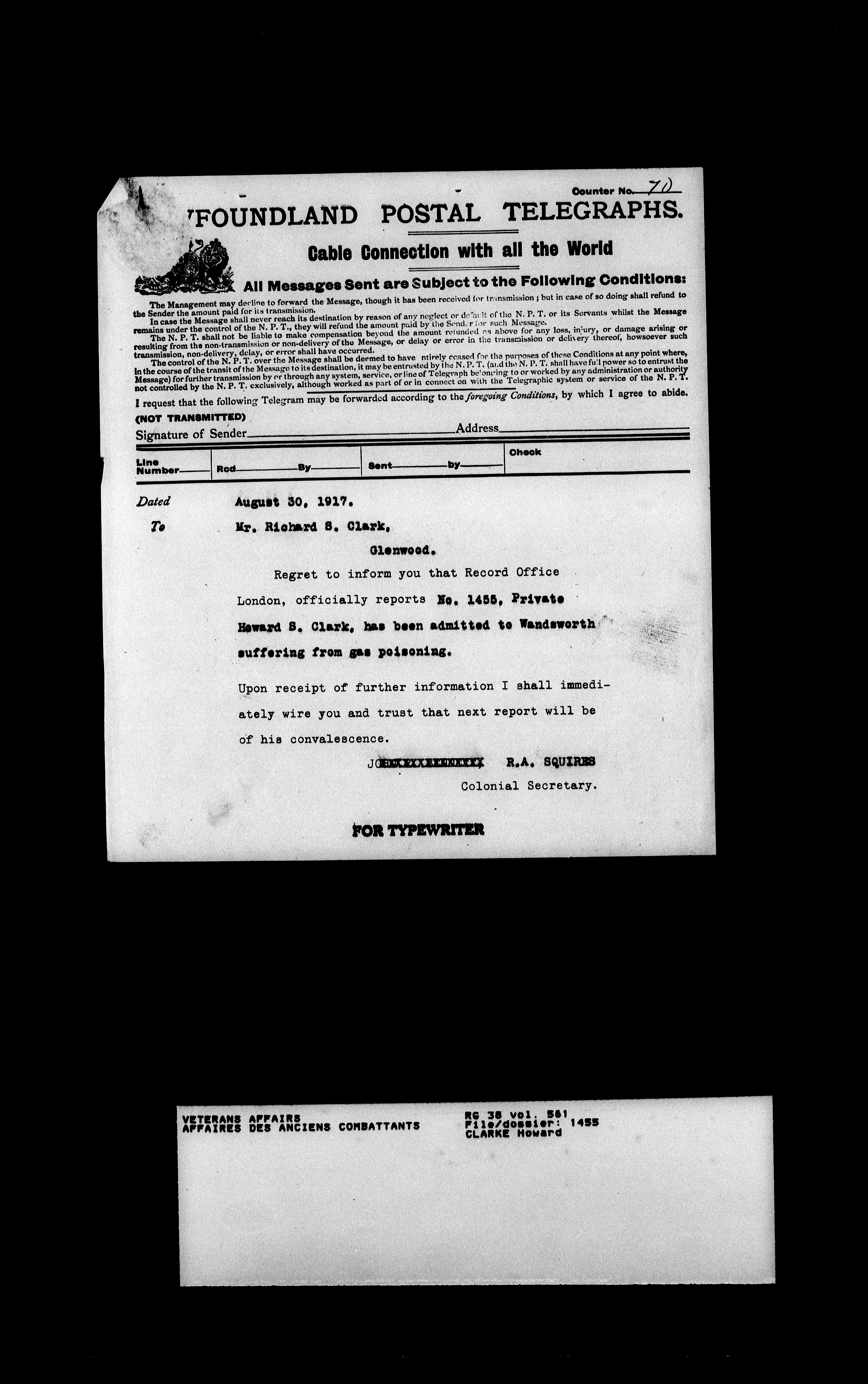 Military service files for members of the Royal Newfoundland Regiment and bandsmen and the Newfoundland Forestry Corps (1914-1919) - 18099