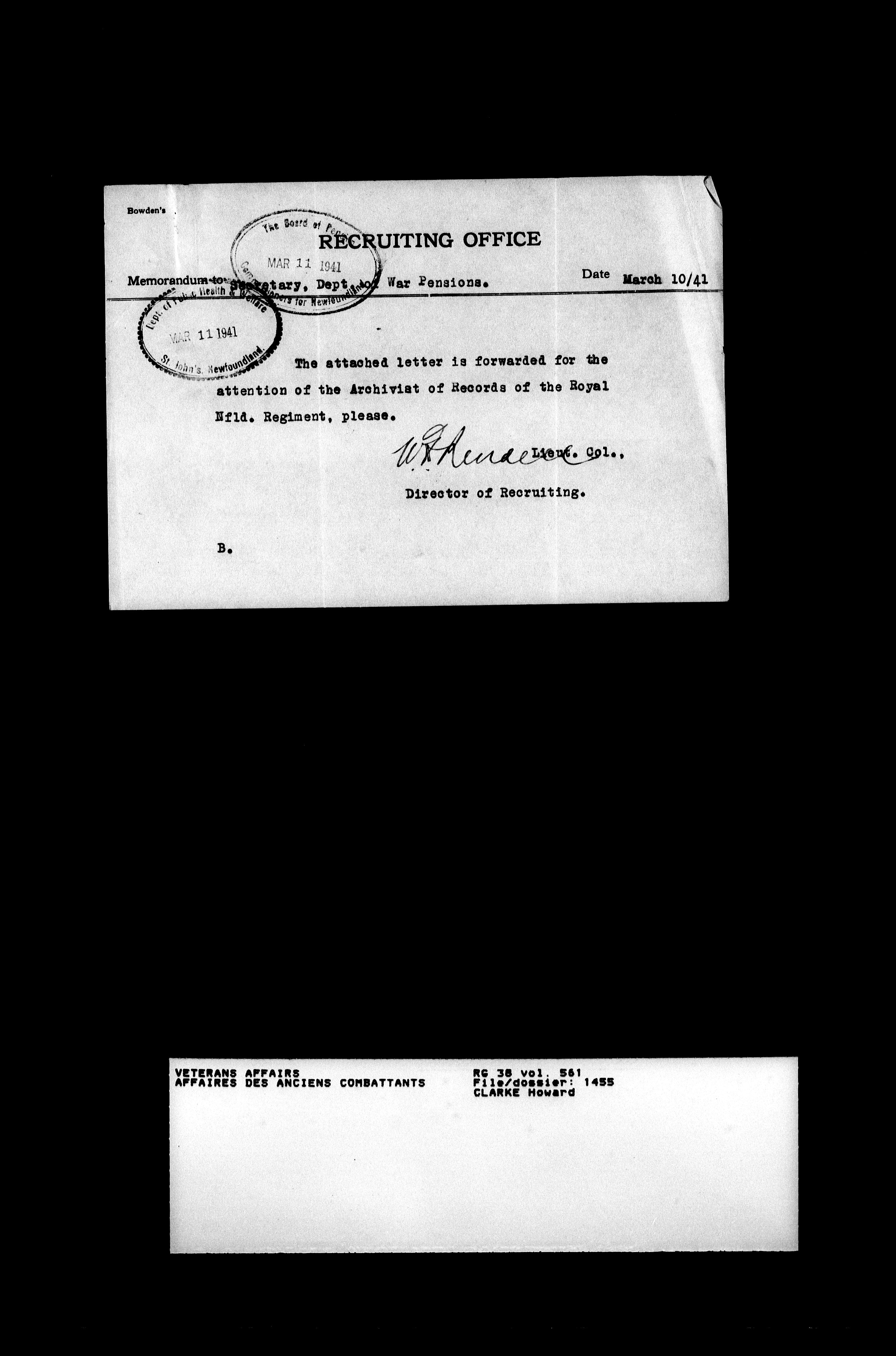 Military service files for members of the Royal Newfoundland Regiment and bandsmen and the Newfoundland Forestry Corps (1914-1919) - 18099