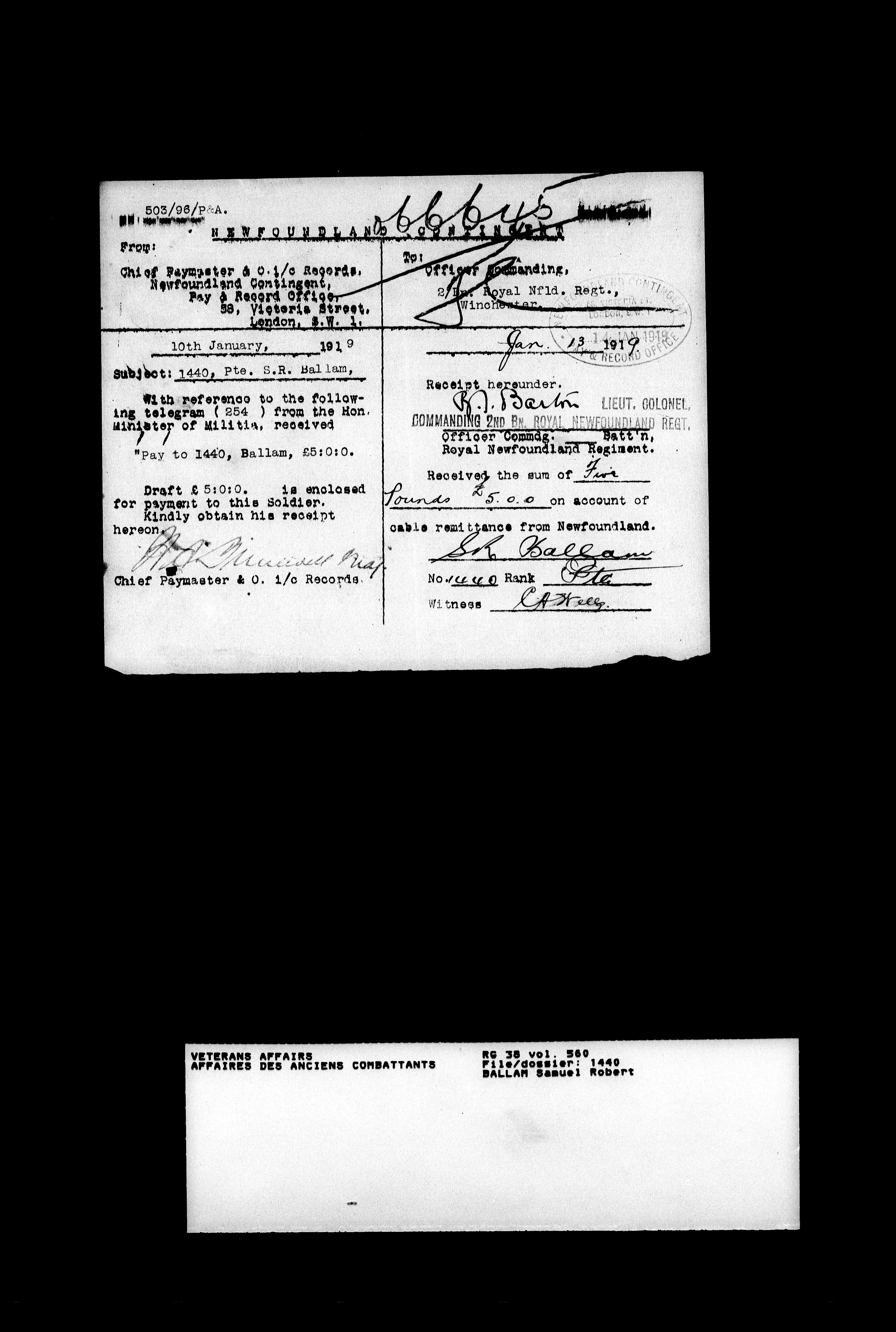 Military service files for members of the Royal Newfoundland Regiment and bandsmen and the Newfoundland Forestry Corps (1914-1919) - 18099