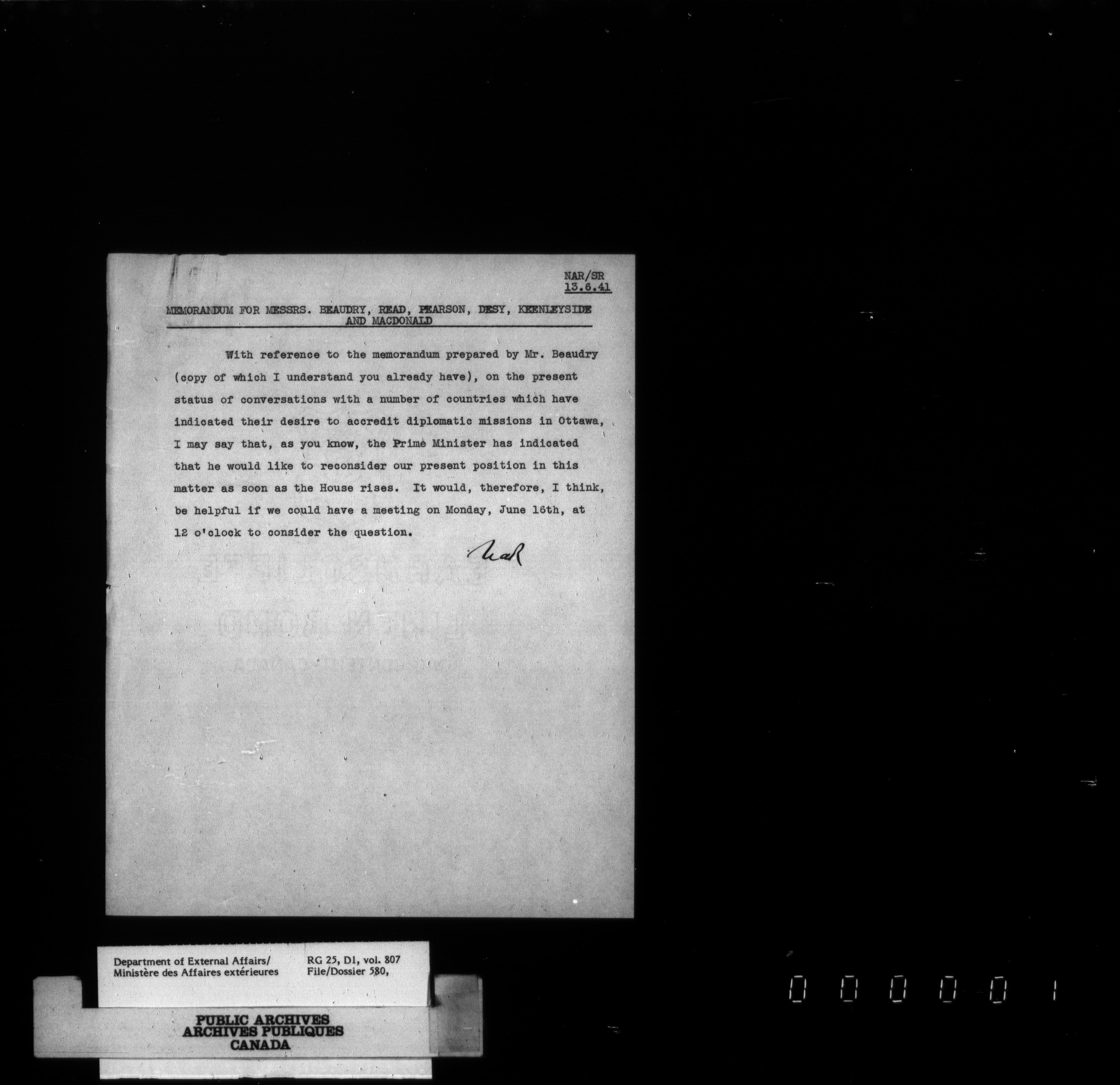 Department of External Affairs : Office of the Under-Secretary of State for External Affairs - 1810