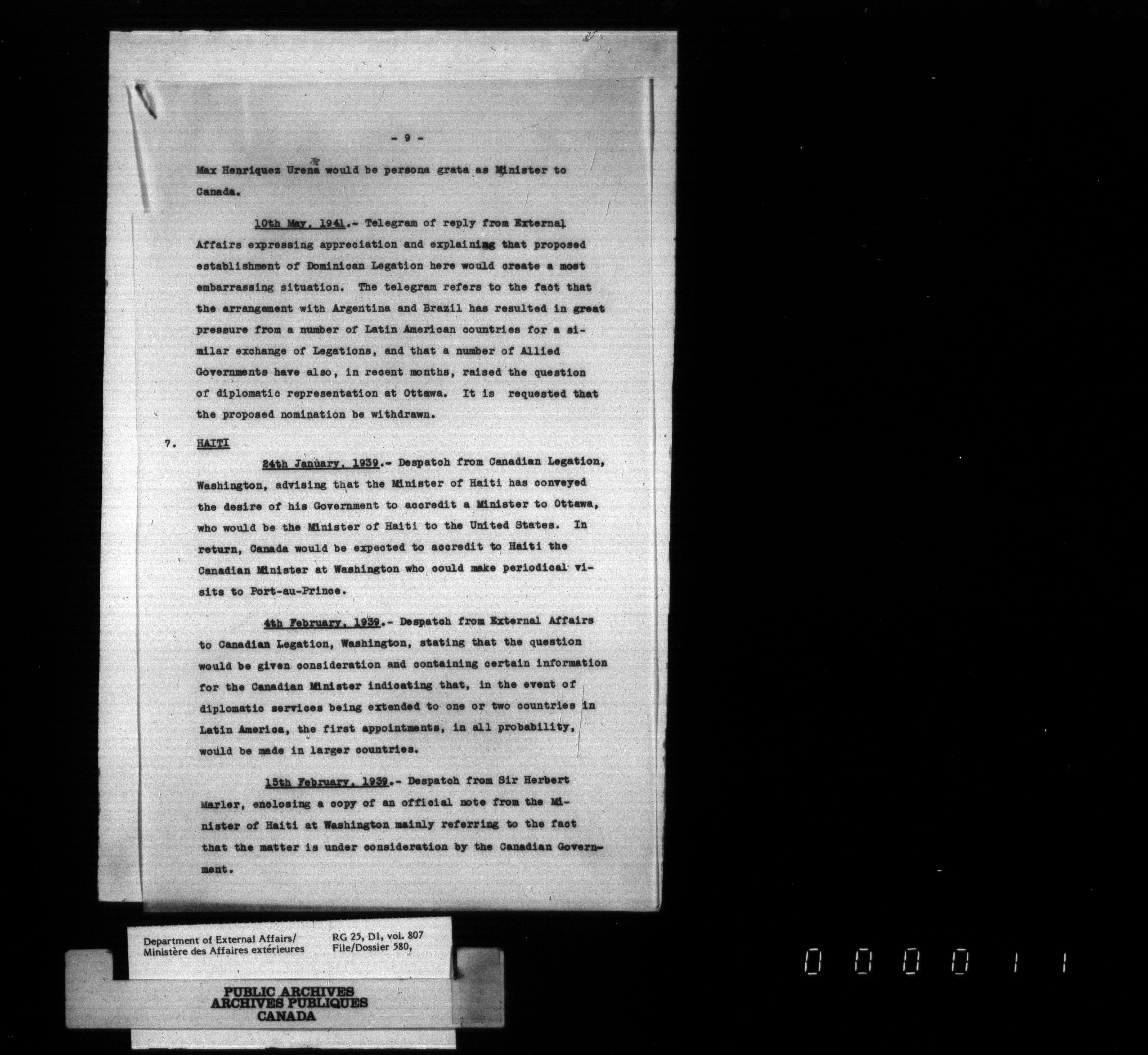 Department of External Affairs : Office of the Under-Secretary of State for External Affairs - 1810
