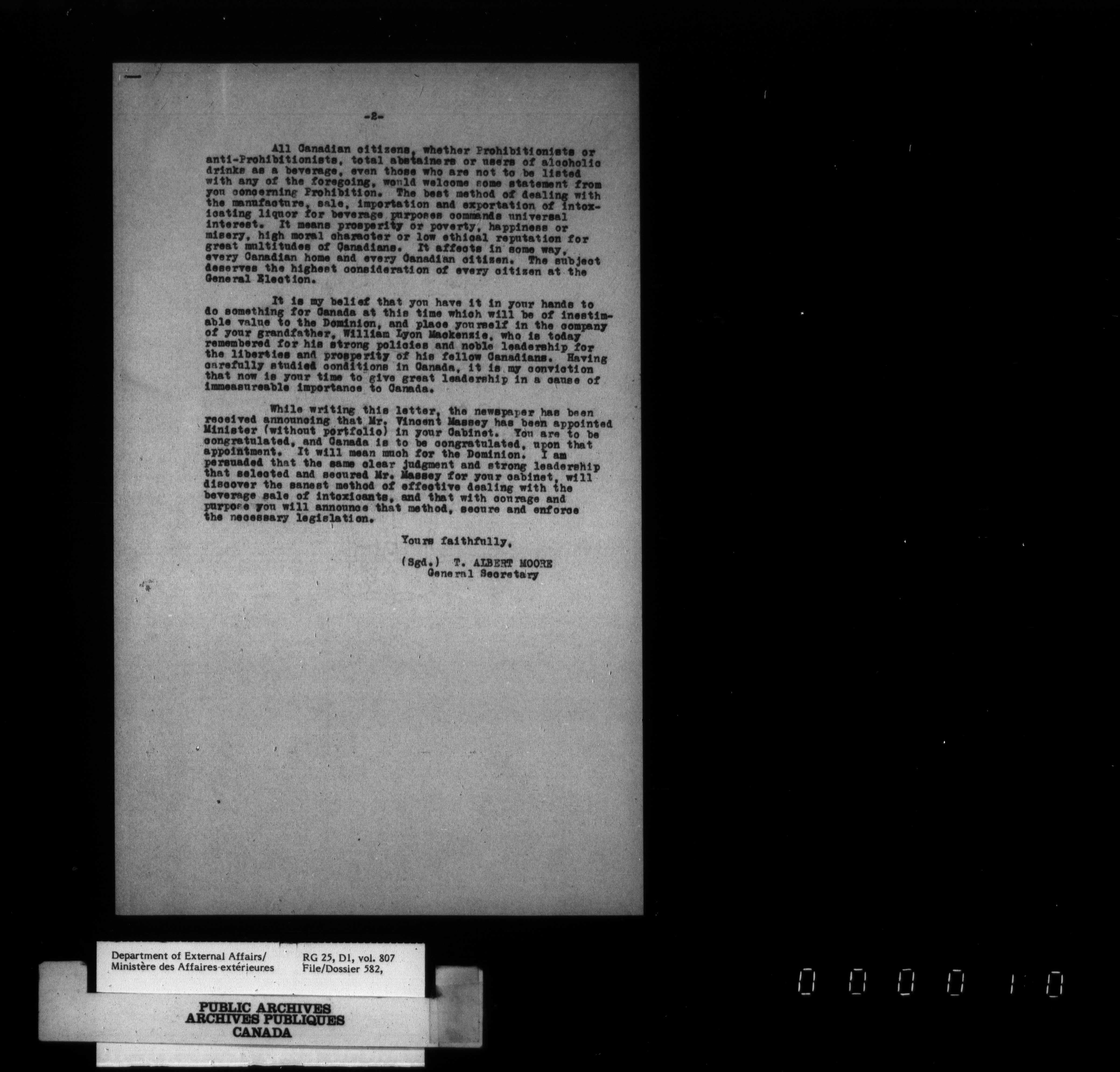Department of External Affairs : Office of the Under-Secretary of State for External Affairs - 1810
