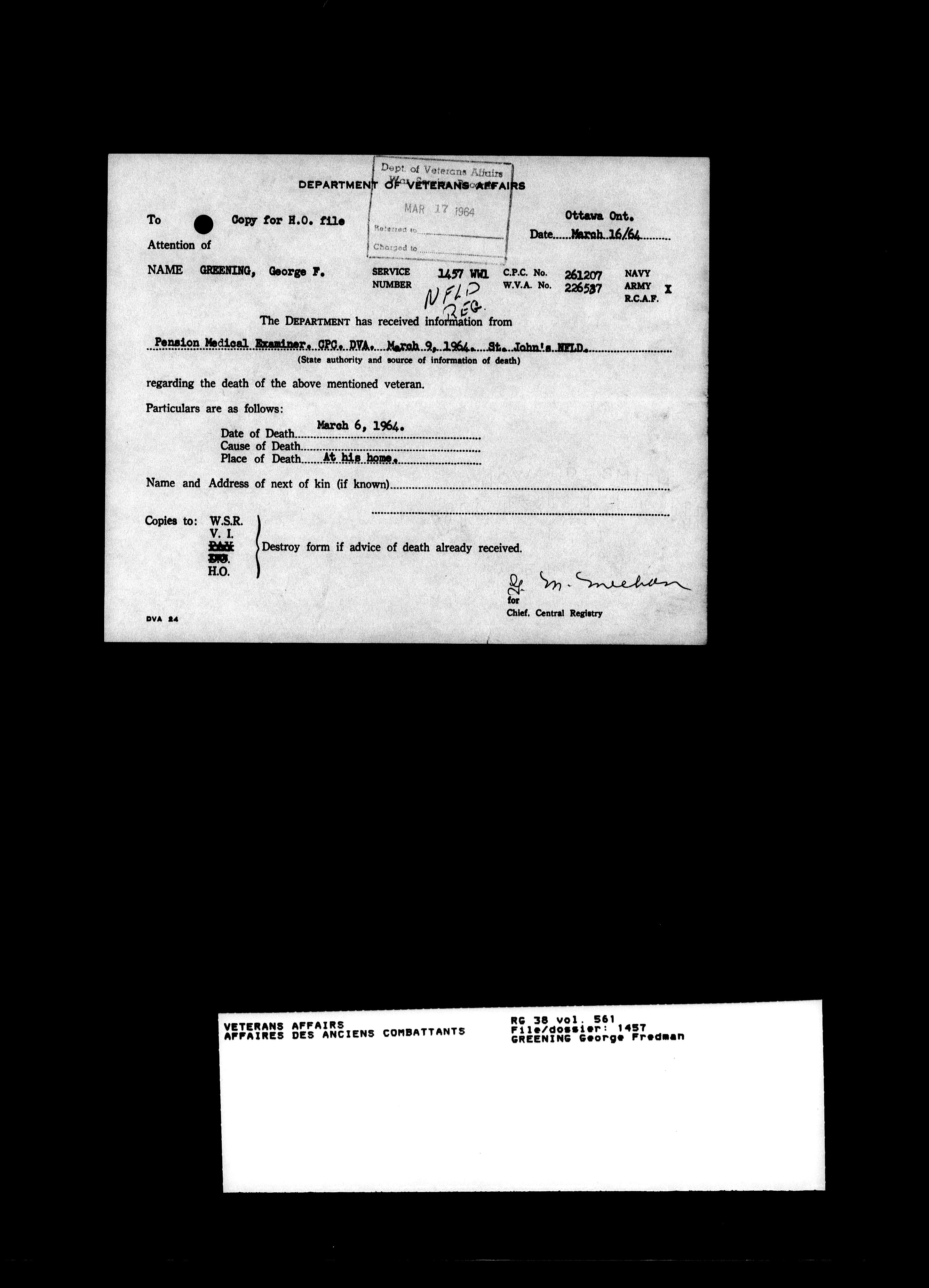 Royal Newfoundland Regiment service files : T-18100