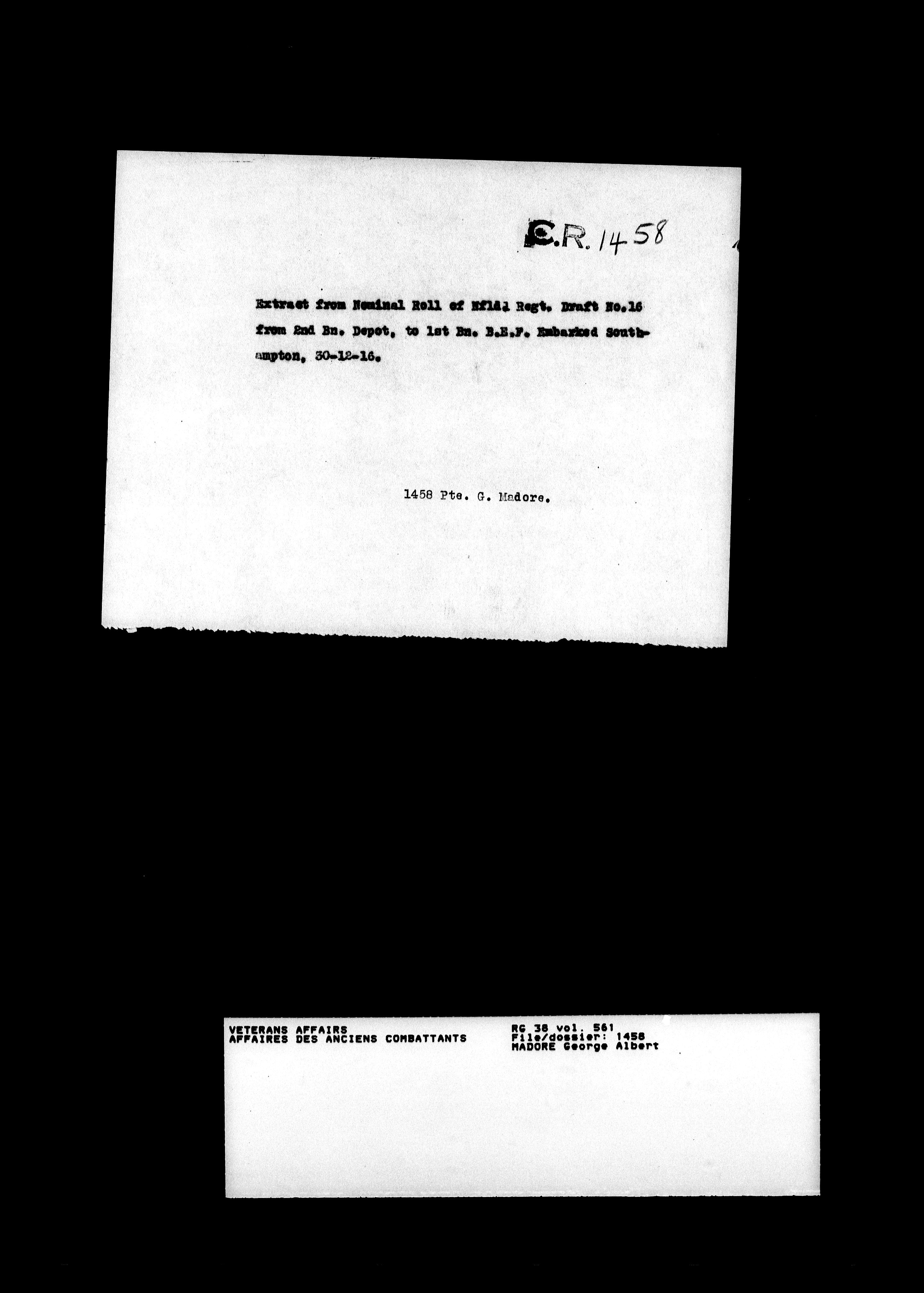 Royal Newfoundland Regiment service files : T-18100