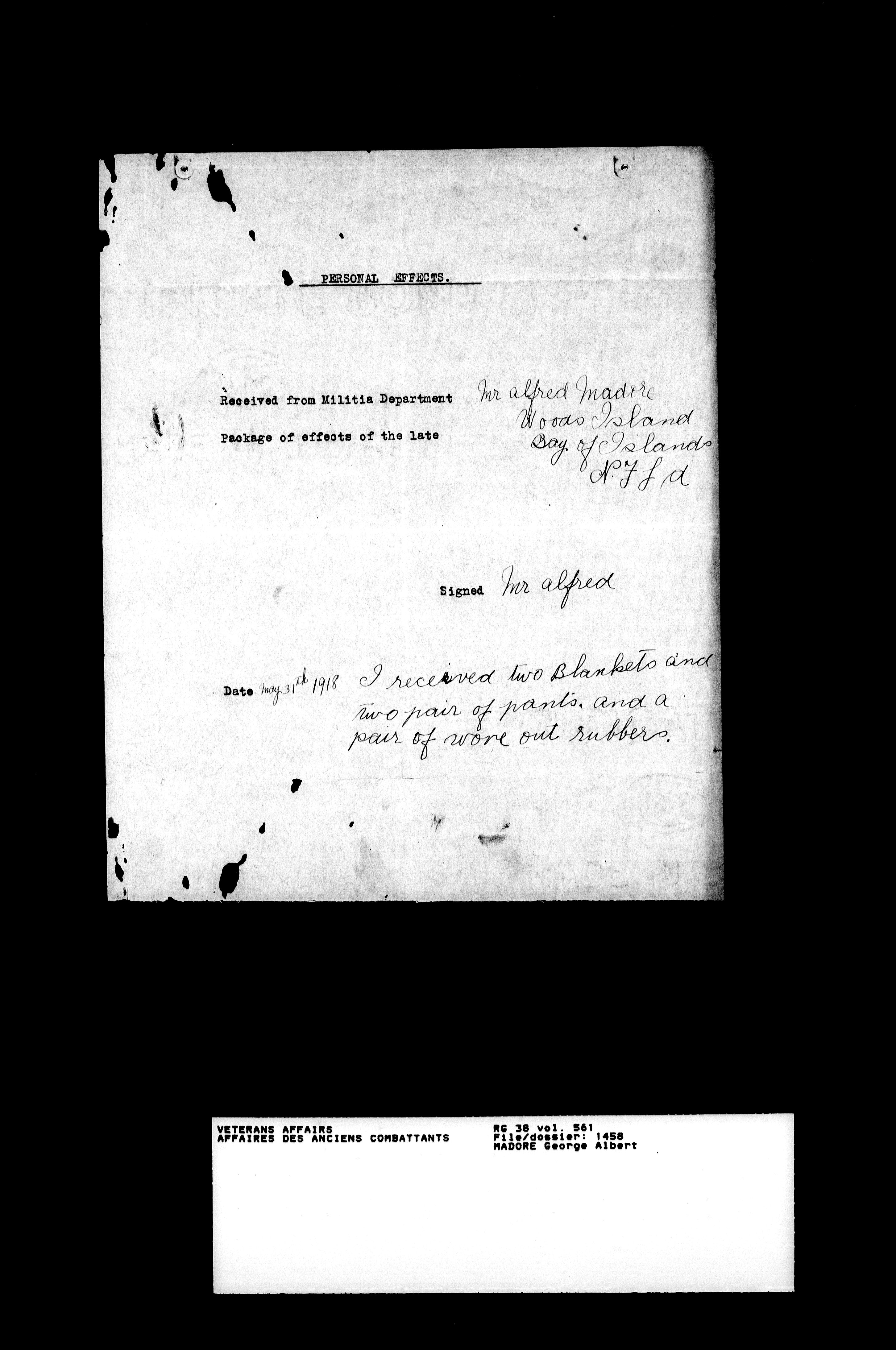 Royal Newfoundland Regiment service files : T-18100