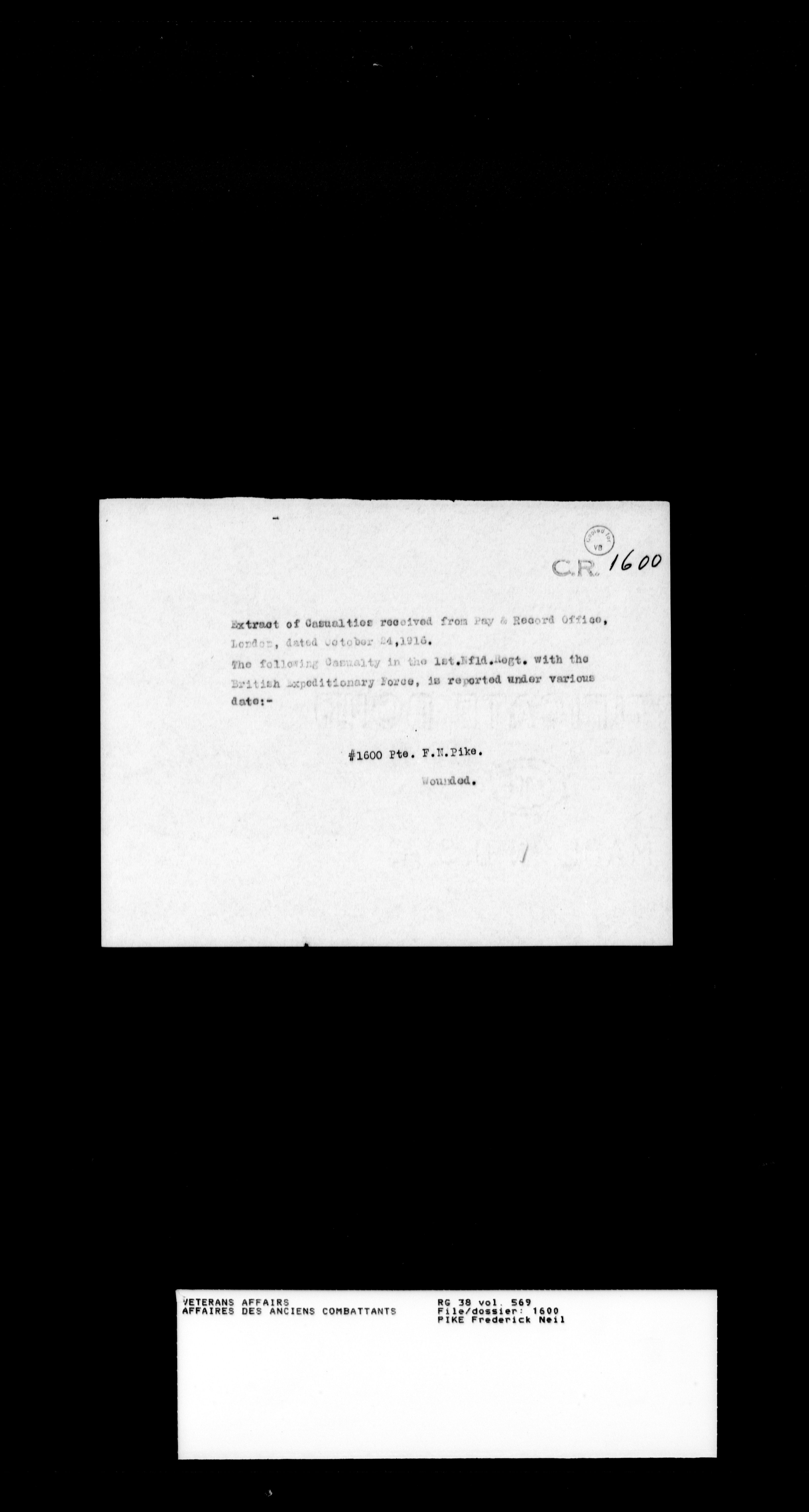 Military service files for members of the Royal Newfoundland Regiment and bandsmen and the Newfoundland Forestry Corps (1914-1919) - 18108