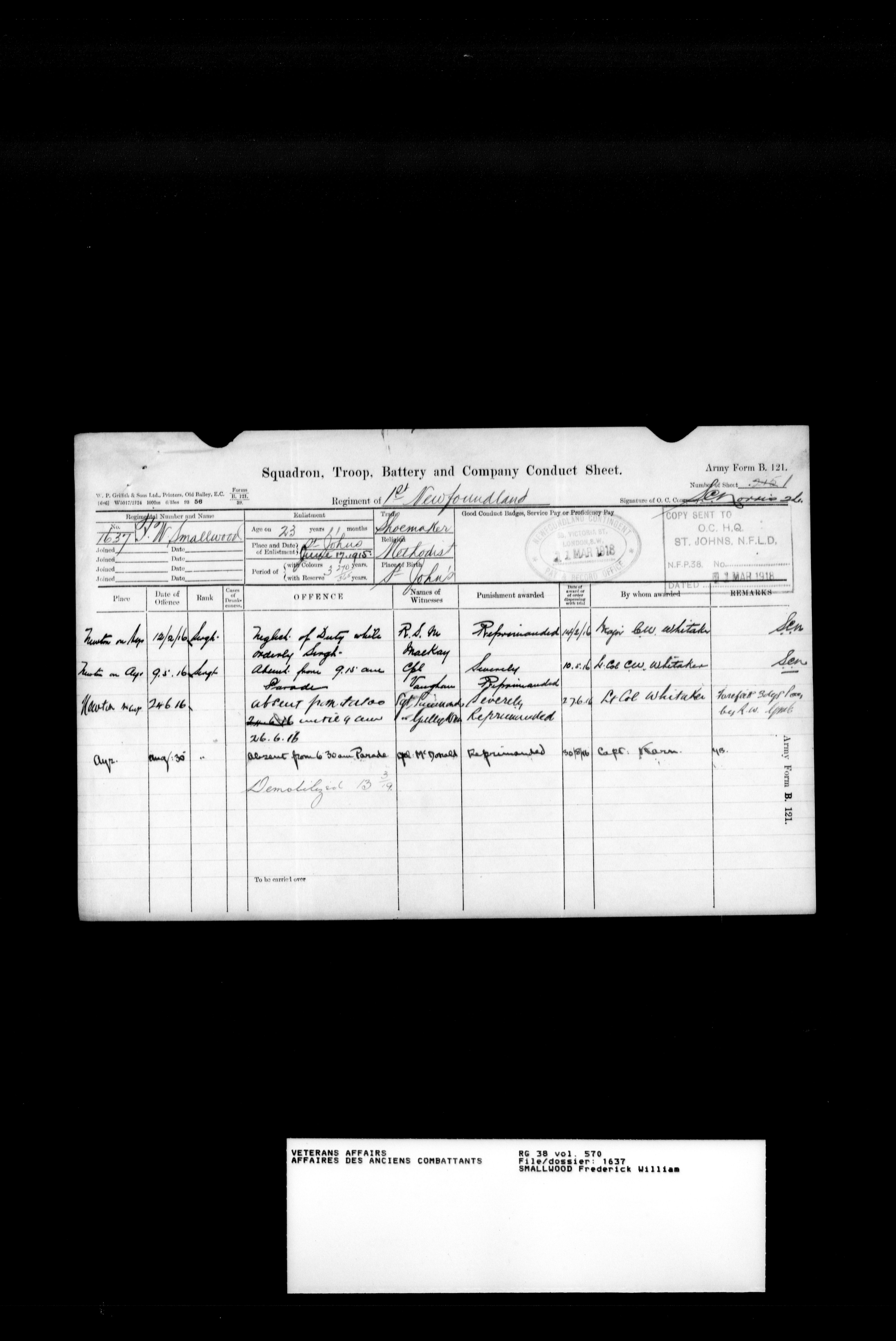 Military service files for members of the Royal Newfoundland Regiment and bandsmen and the Newfoundland Forestry Corps (1914-1919) - 18109
