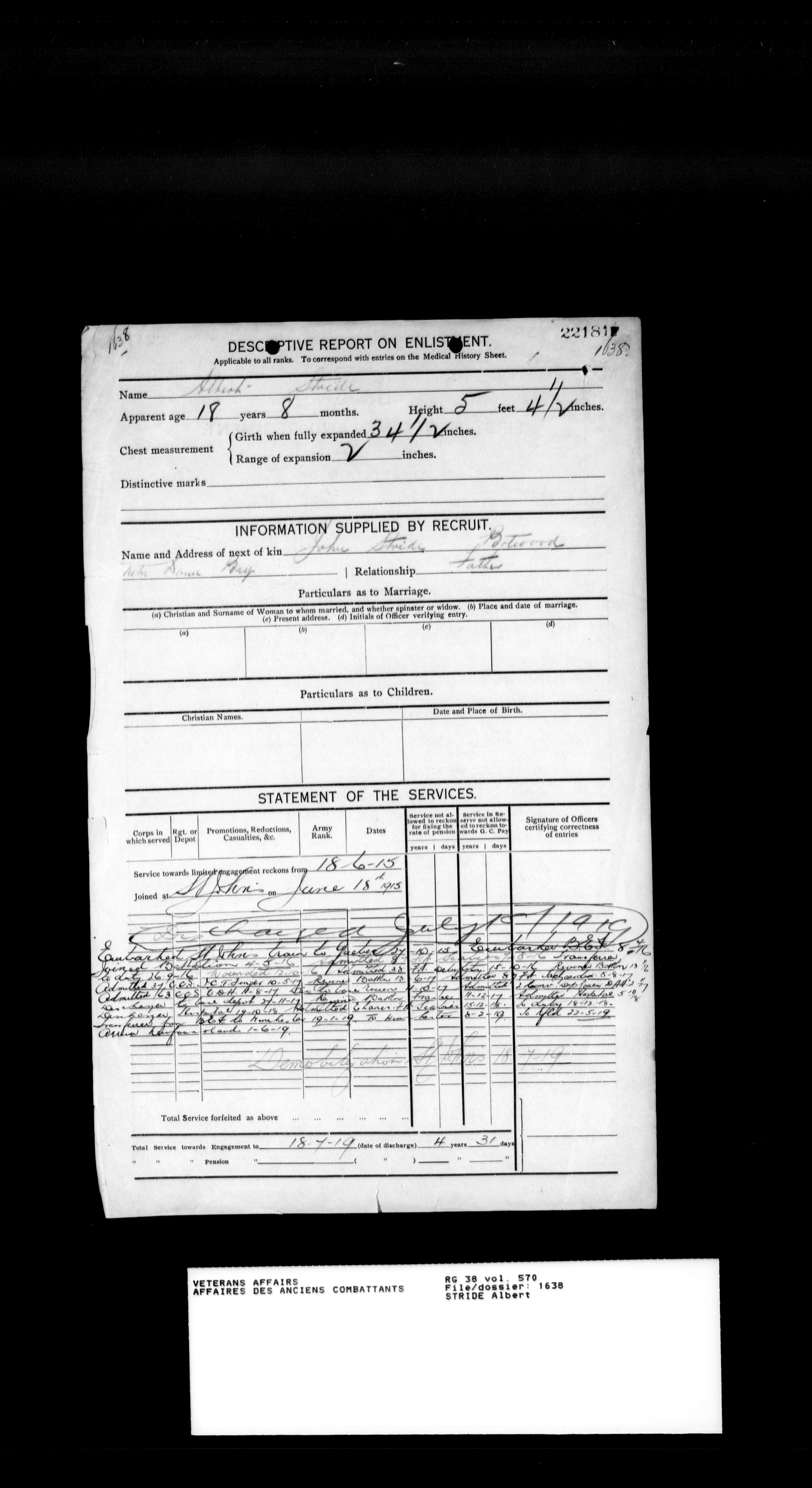 Military service files for members of the Royal Newfoundland Regiment and bandsmen and the Newfoundland Forestry Corps (1914-1919) - 18109