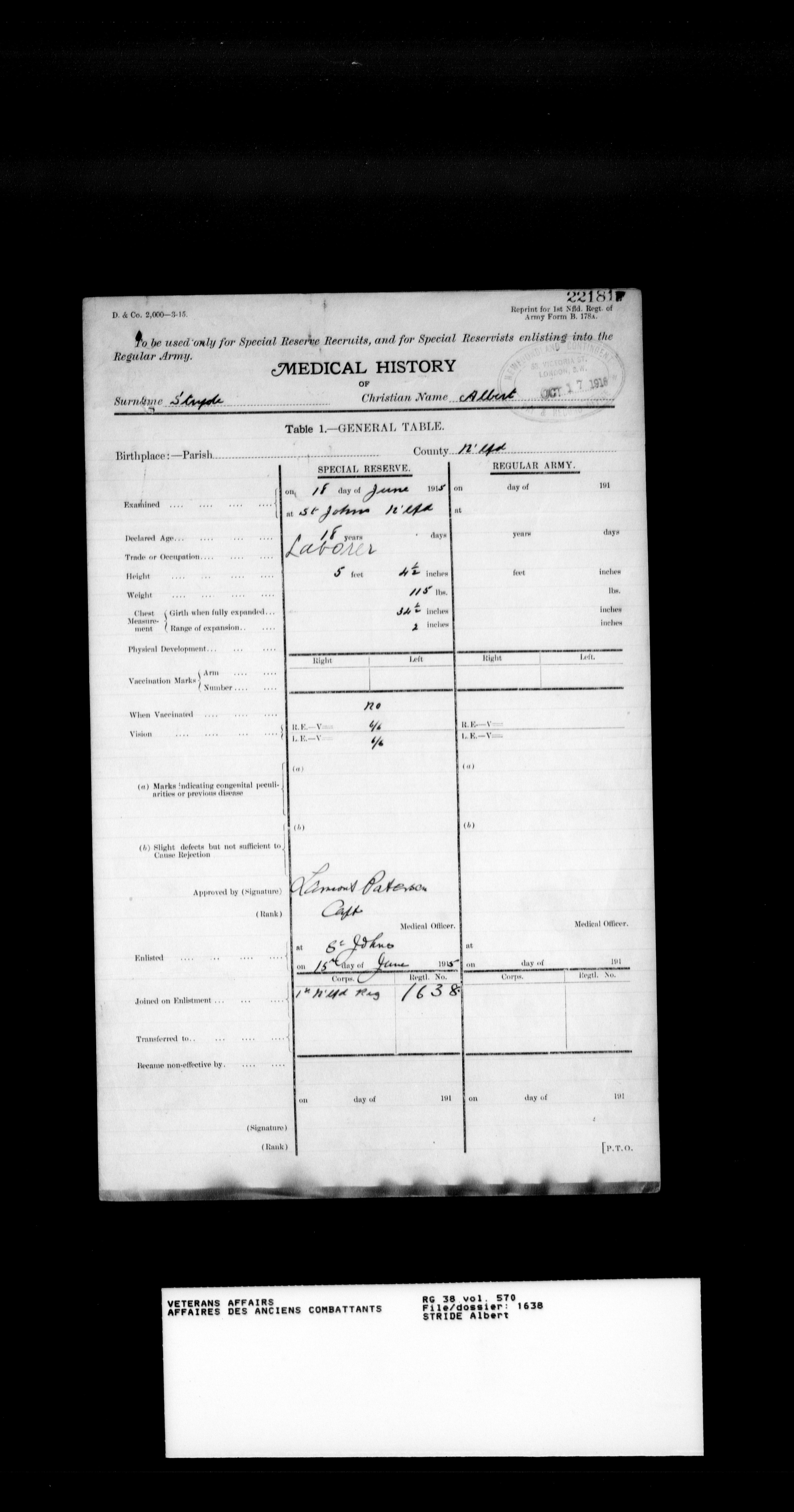 Military service files for members of the Royal Newfoundland Regiment and bandsmen and the Newfoundland Forestry Corps (1914-1919) - 18109