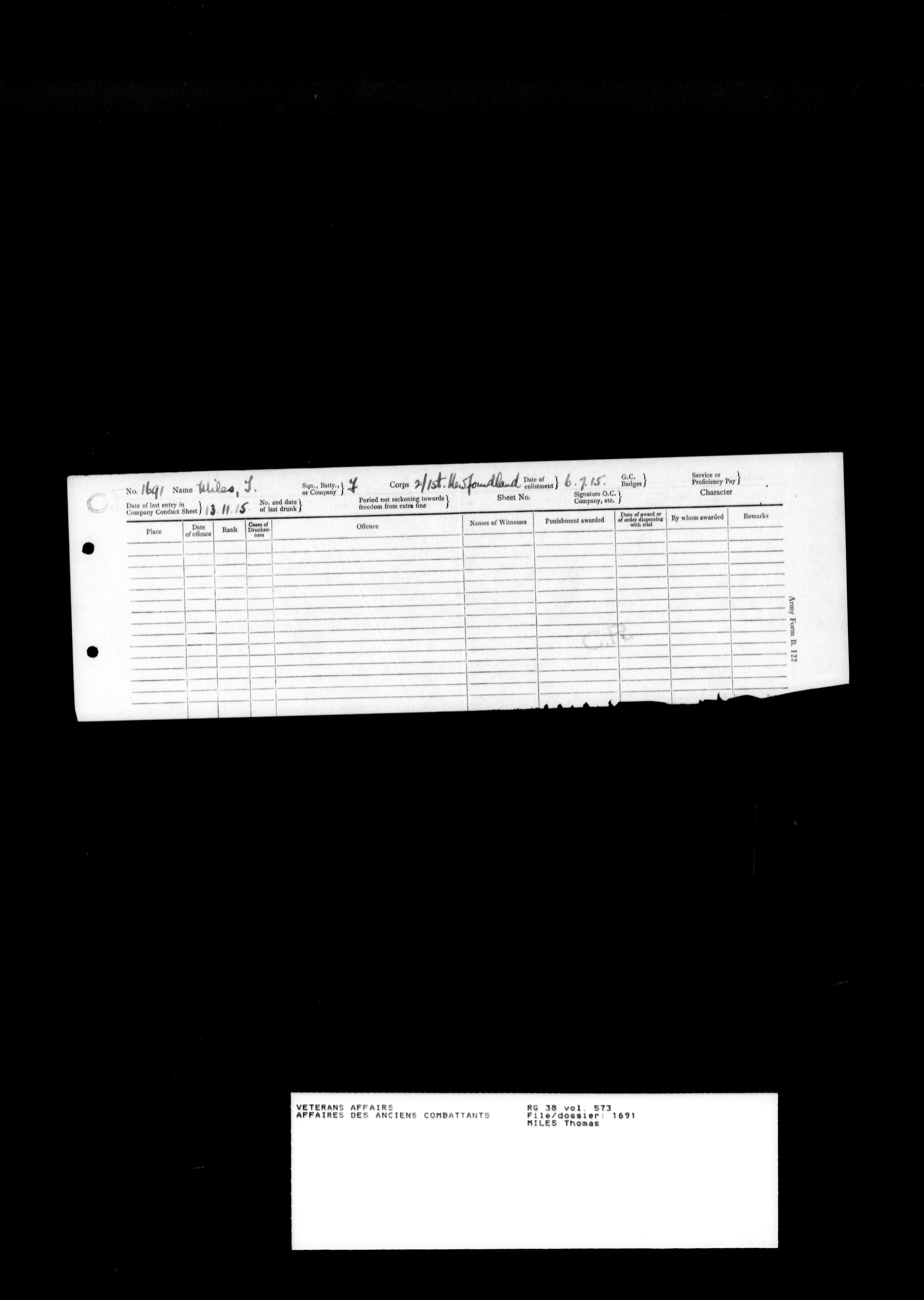 Military service files for members of the Royal Newfoundland Regiment and bandsmen and the Newfoundland Forestry Corps (1914-1919) - 18113