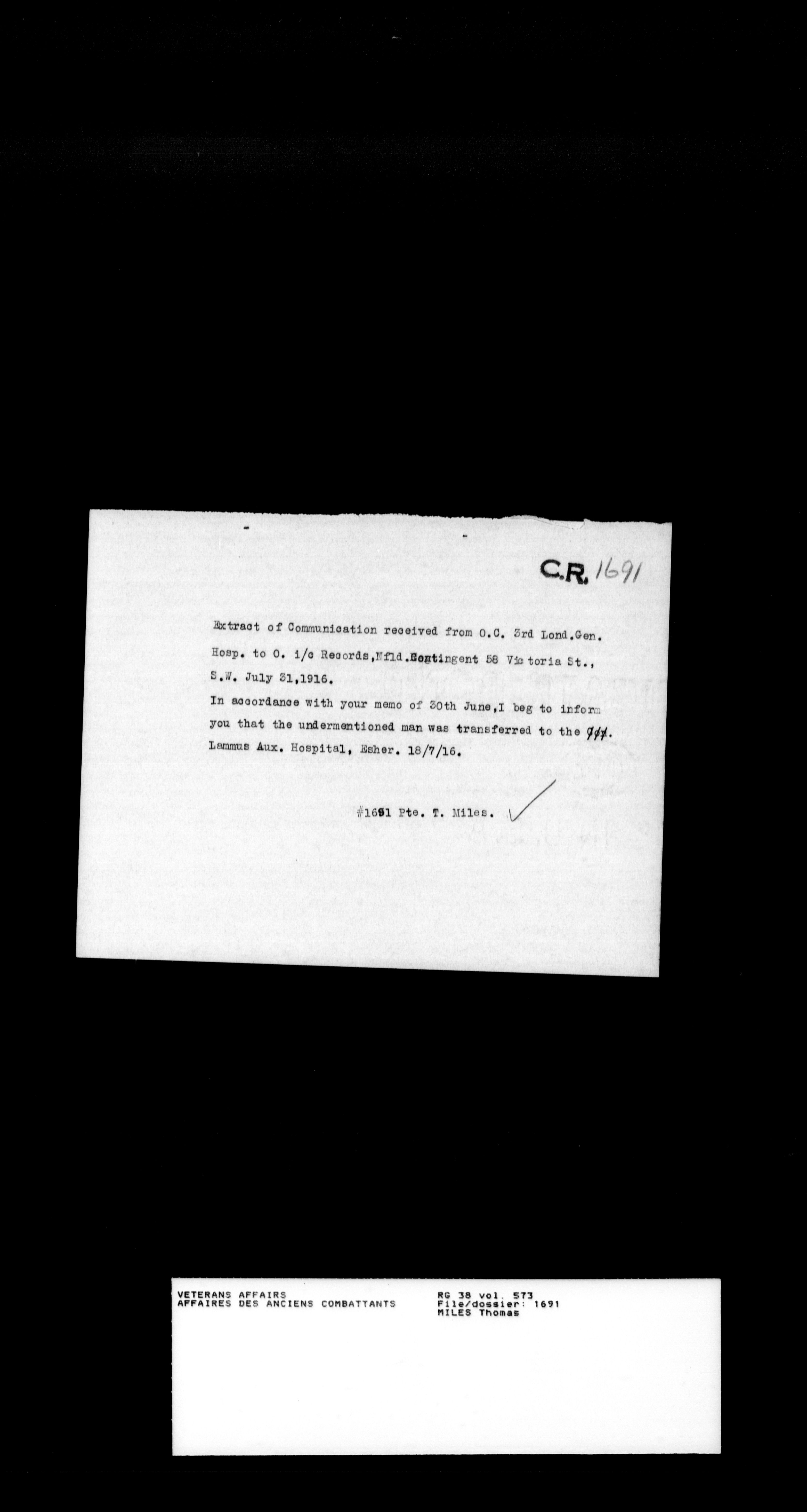 Military service files for members of the Royal Newfoundland Regiment and bandsmen and the Newfoundland Forestry Corps (1914-1919) - 18113
