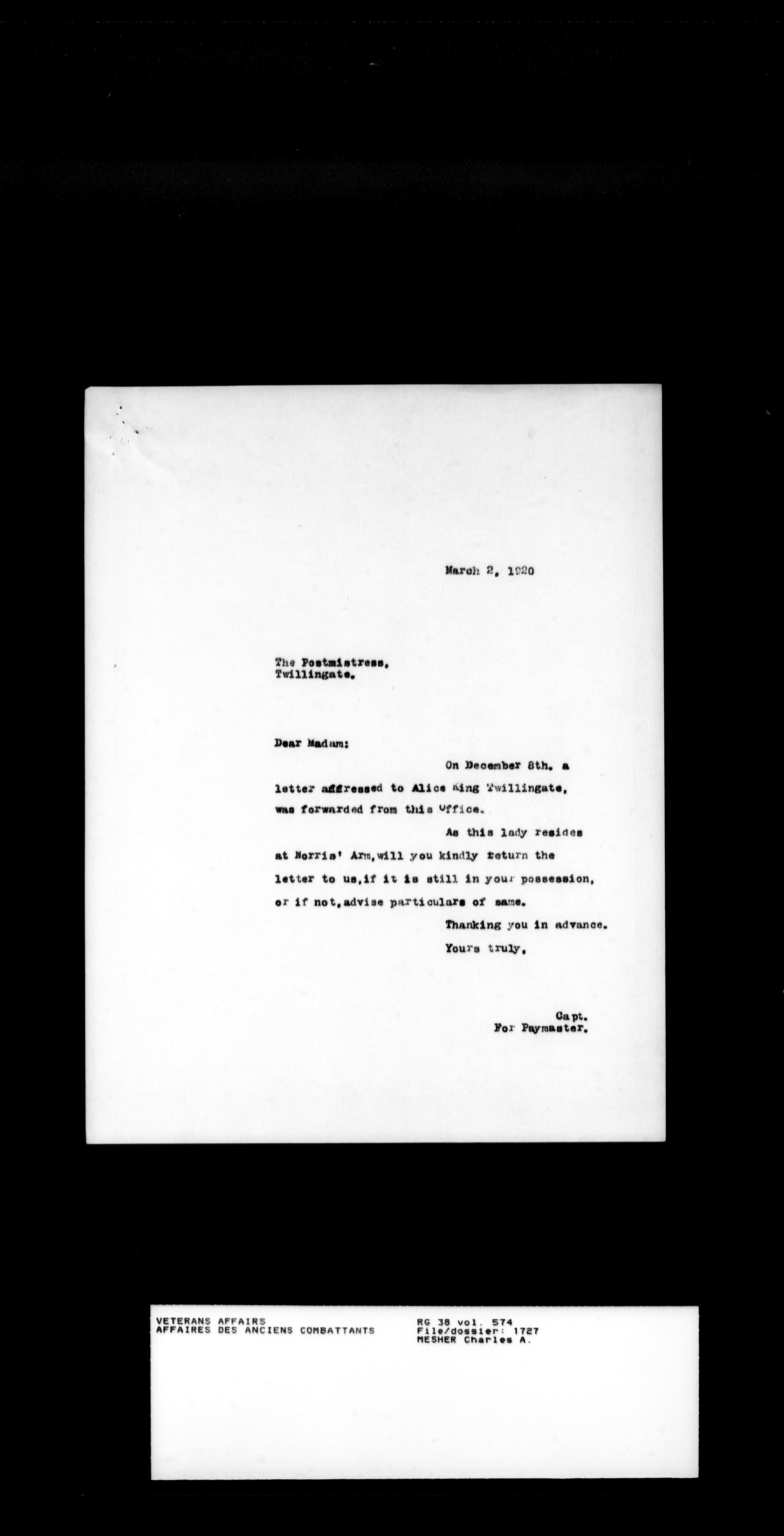 Military service files for members of the Royal Newfoundland Regiment and bandsmen and the Newfoundland Forestry Corps (1914-1919) - 18114