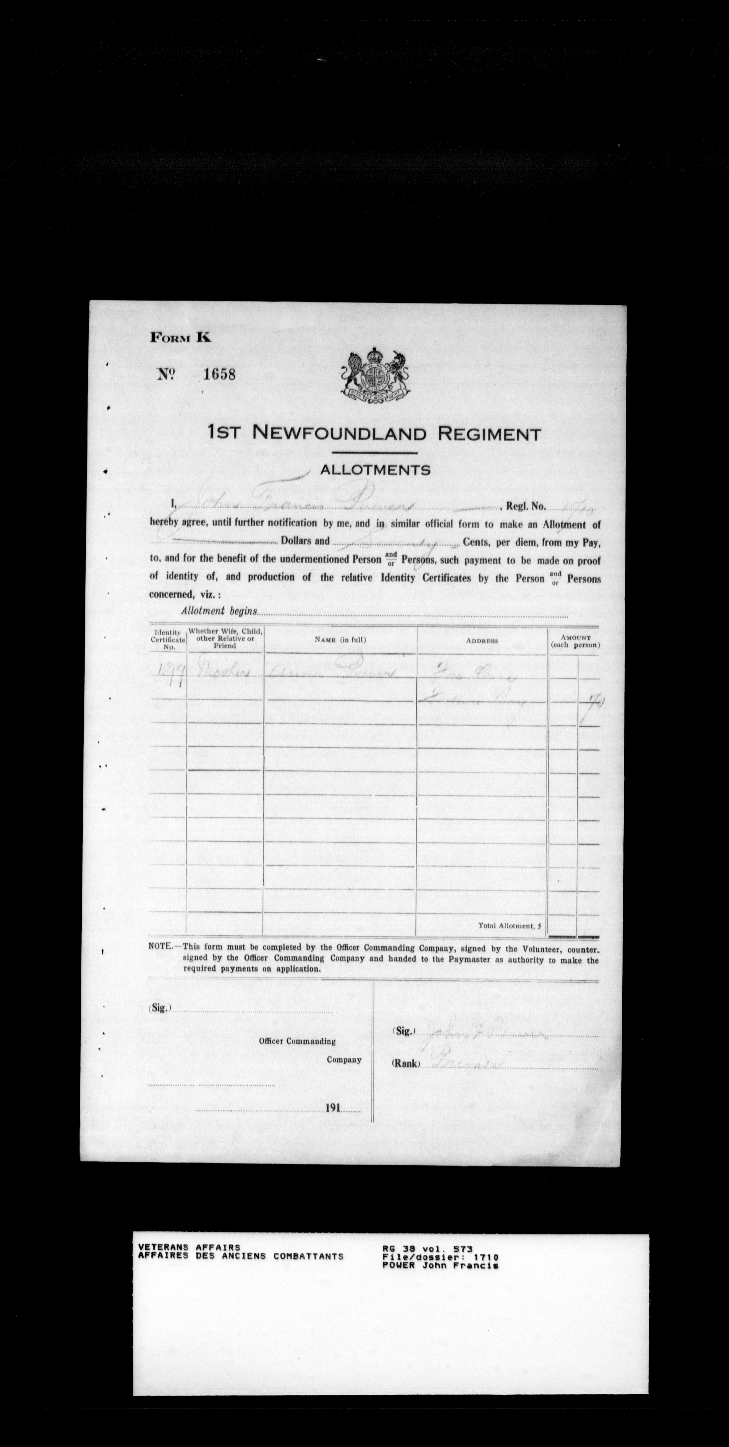 Military service files for members of the Royal Newfoundland Regiment and bandsmen and the Newfoundland Forestry Corps (1914-1919) - 18114
