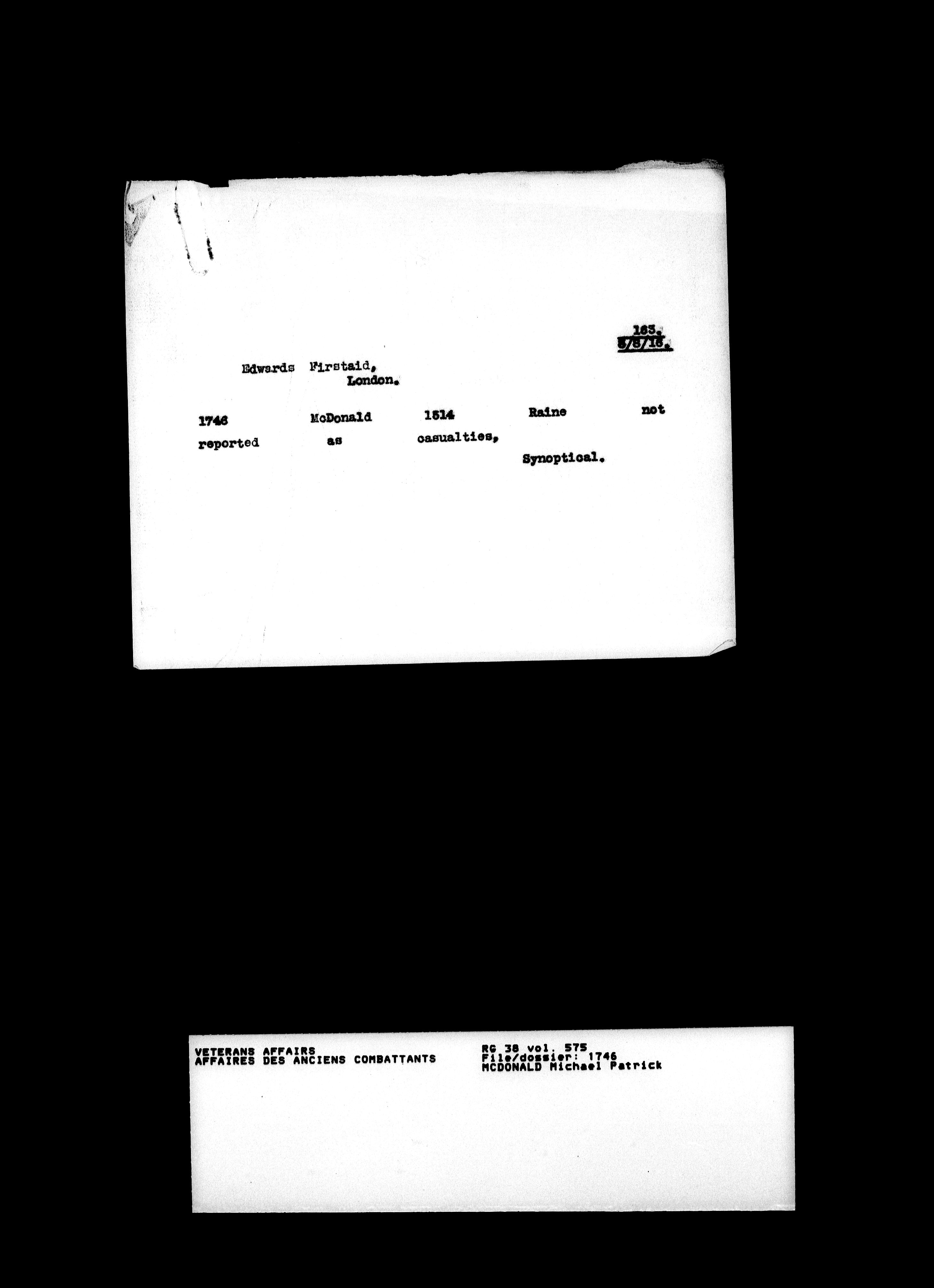 Military service files for members of the Royal Newfoundland Regiment and bandsmen and the Newfoundland Forestry Corps (1914-1919) - 18116