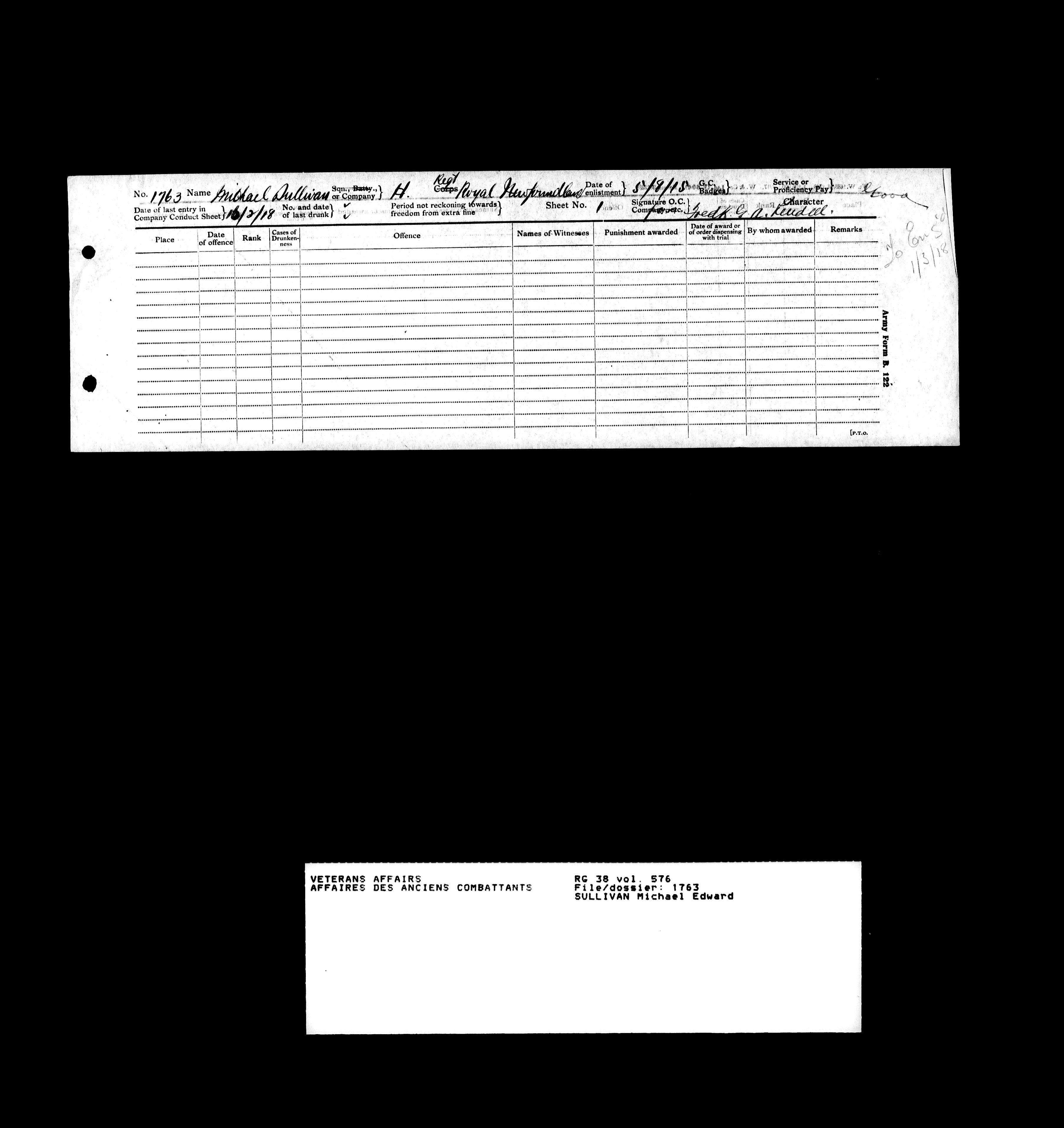 Military service files for members of the Royal Newfoundland Regiment and bandsmen and the Newfoundland Forestry Corps (1914-1919) - 18117
