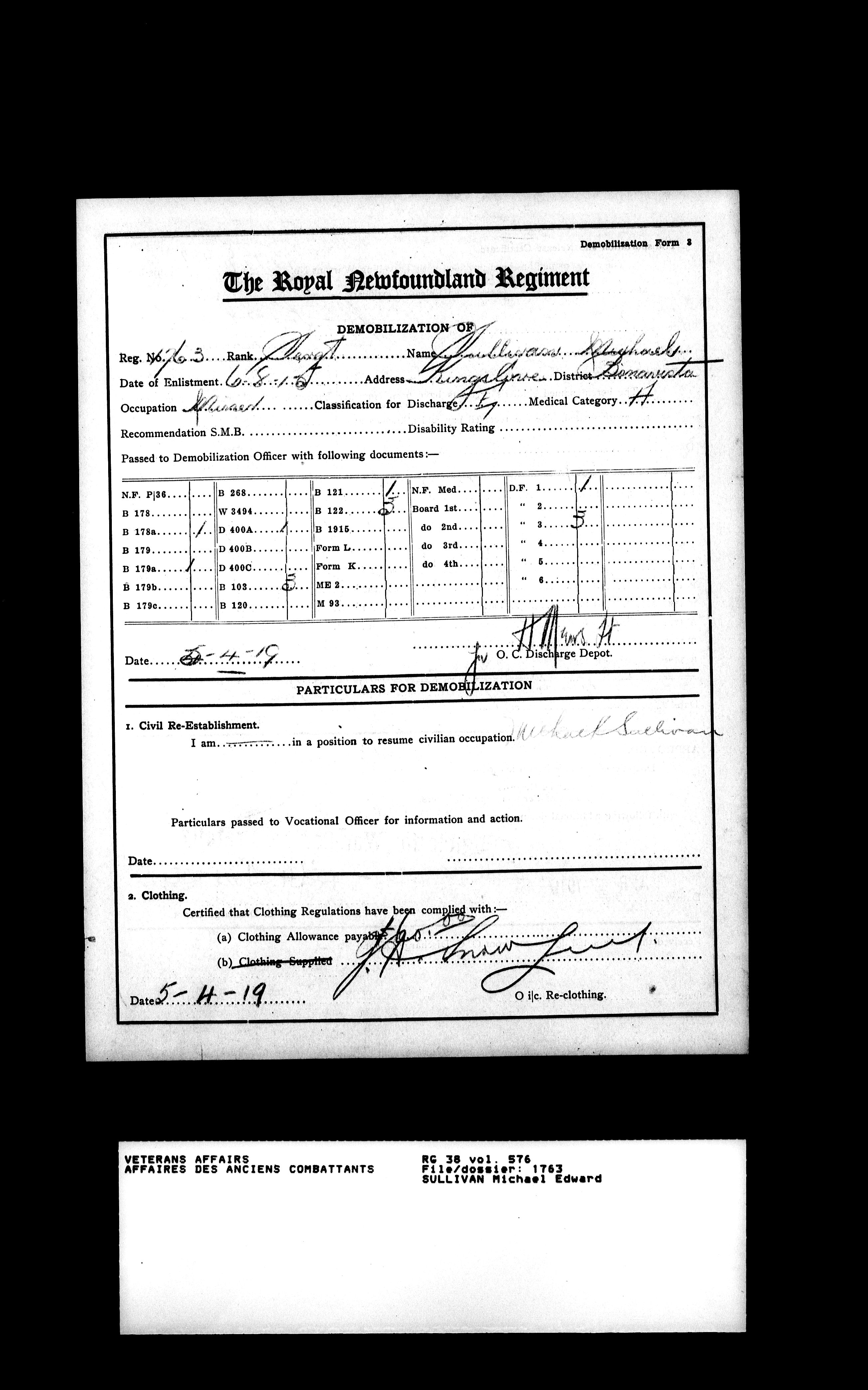Royal Newfoundland Regiment service files : T-18117