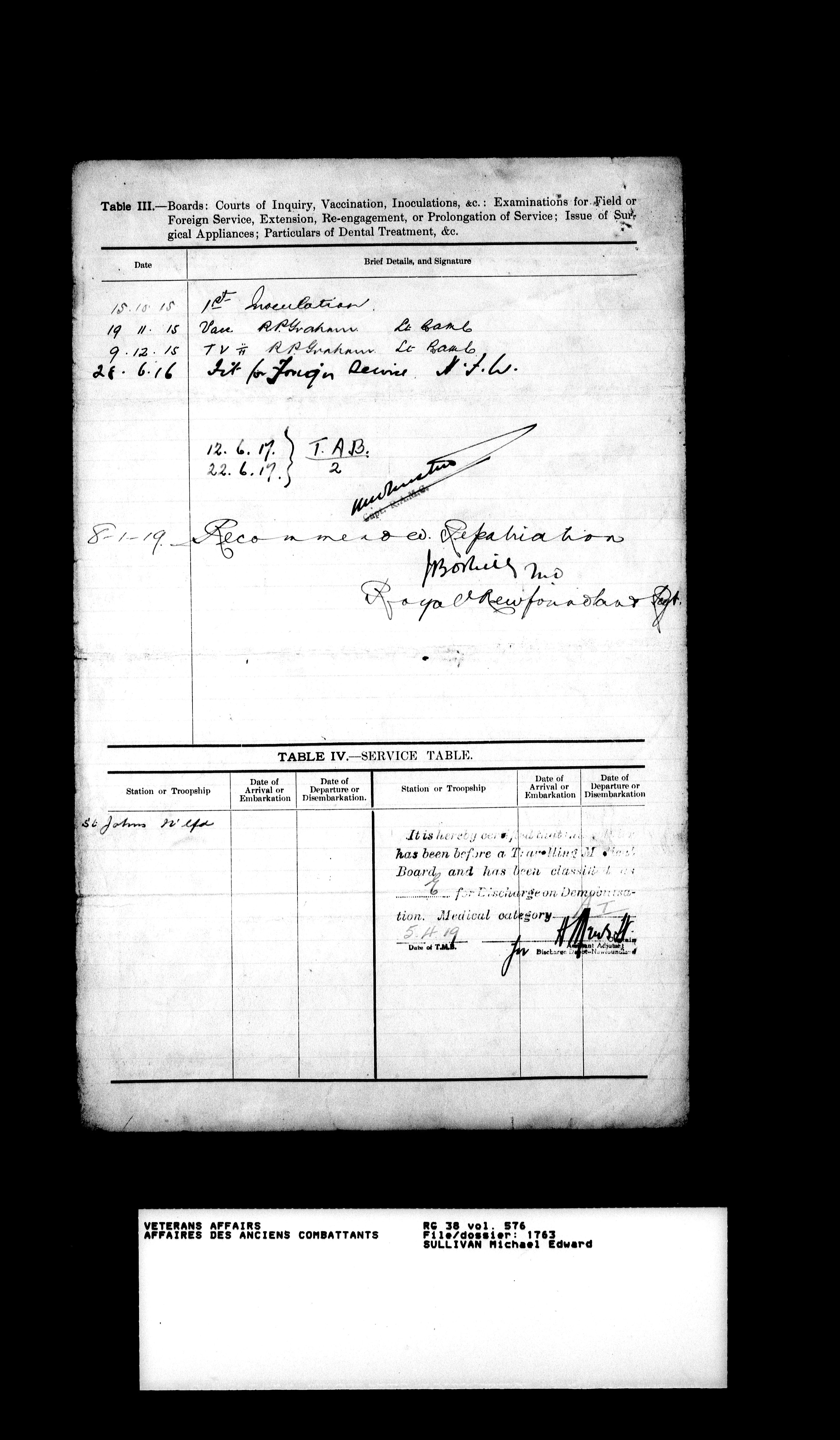 Military service files for members of the Royal Newfoundland Regiment and bandsmen and the Newfoundland Forestry Corps (1914-1919) - 18117