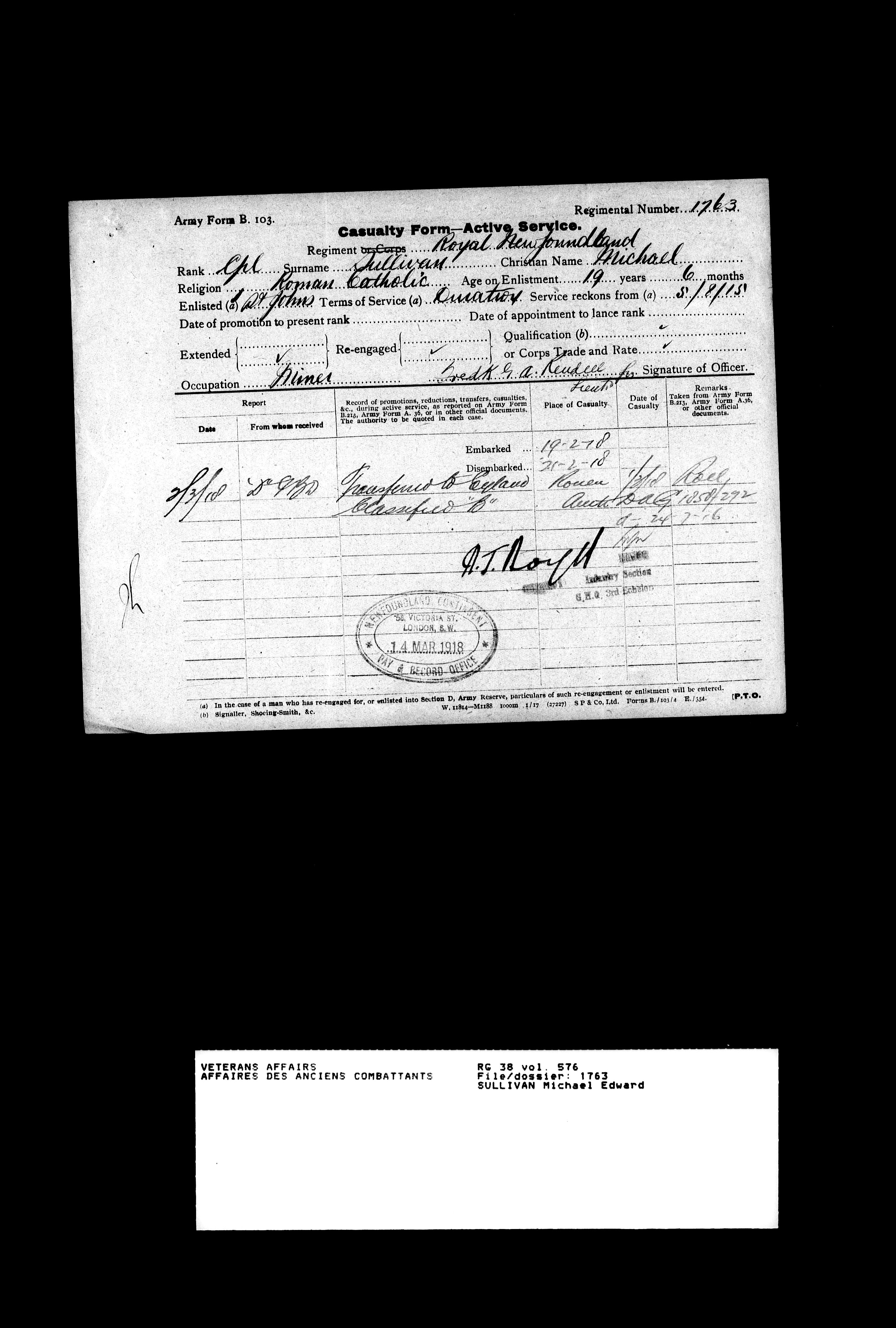 Royal Newfoundland Regiment service files : T-18117
