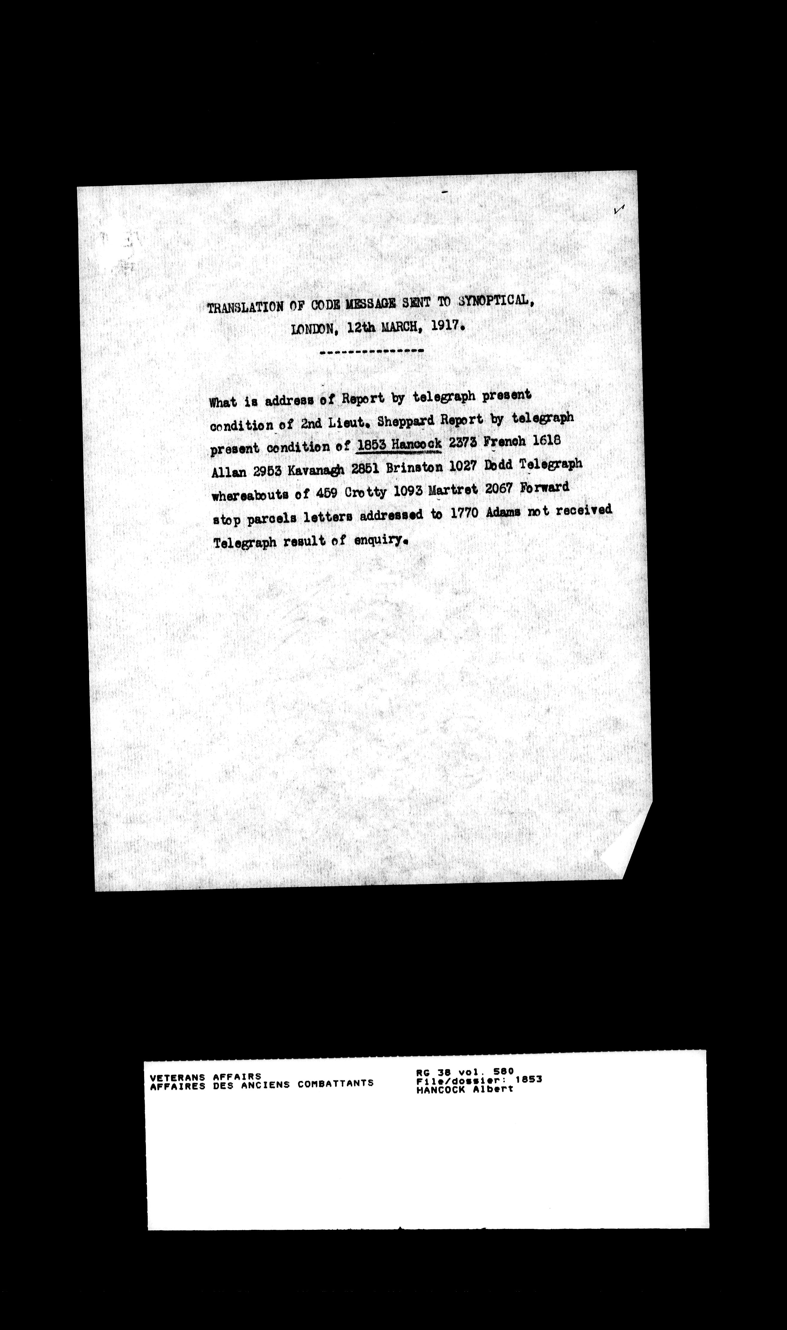 Military service files for members of the Royal Newfoundland Regiment and bandsmen and the Newfoundland Forestry Corps (1914-1919) - 18121