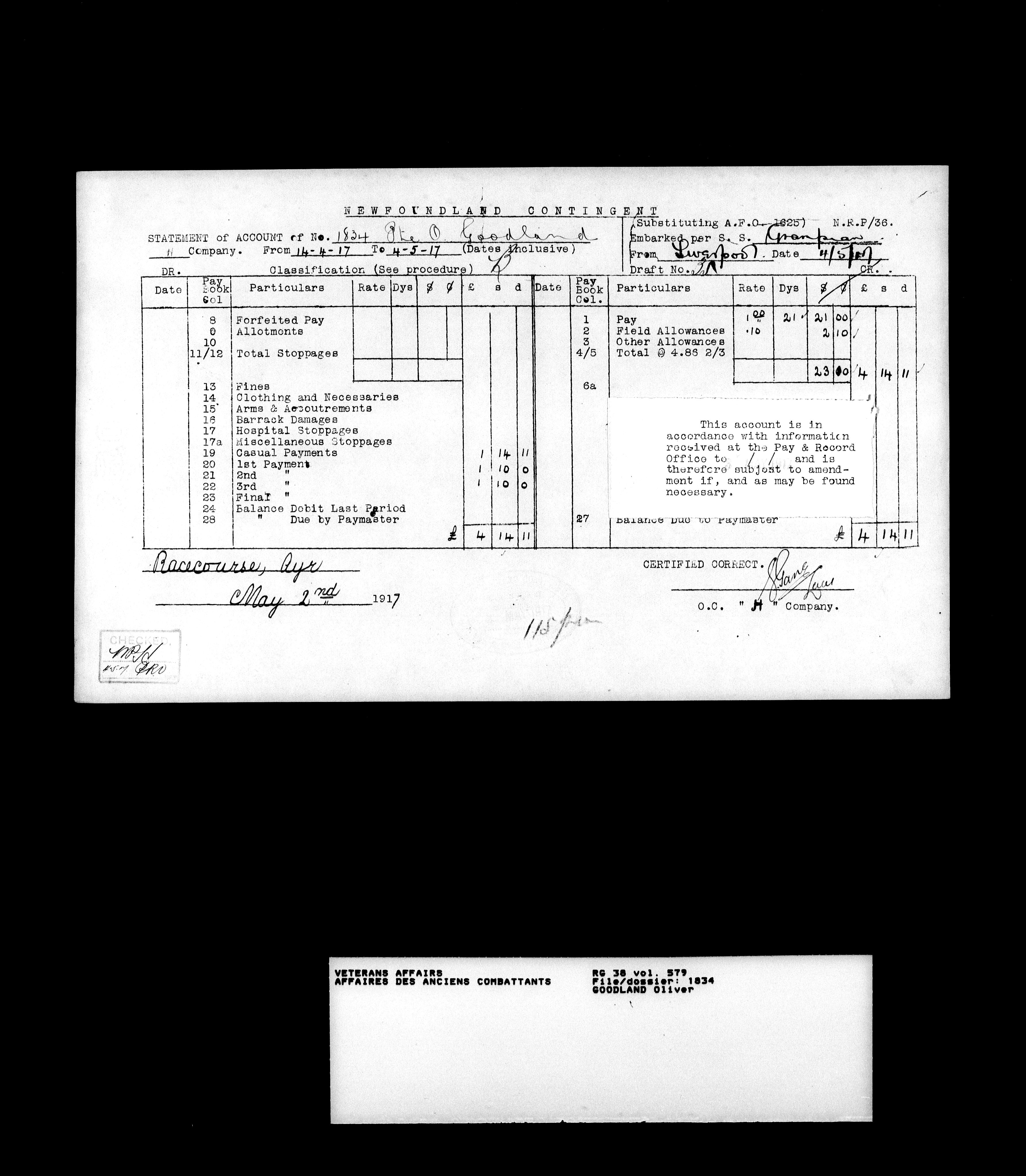 Military service files for members of the Royal Newfoundland Regiment and bandsmen and the Newfoundland Forestry Corps (1914-1919) - 18121