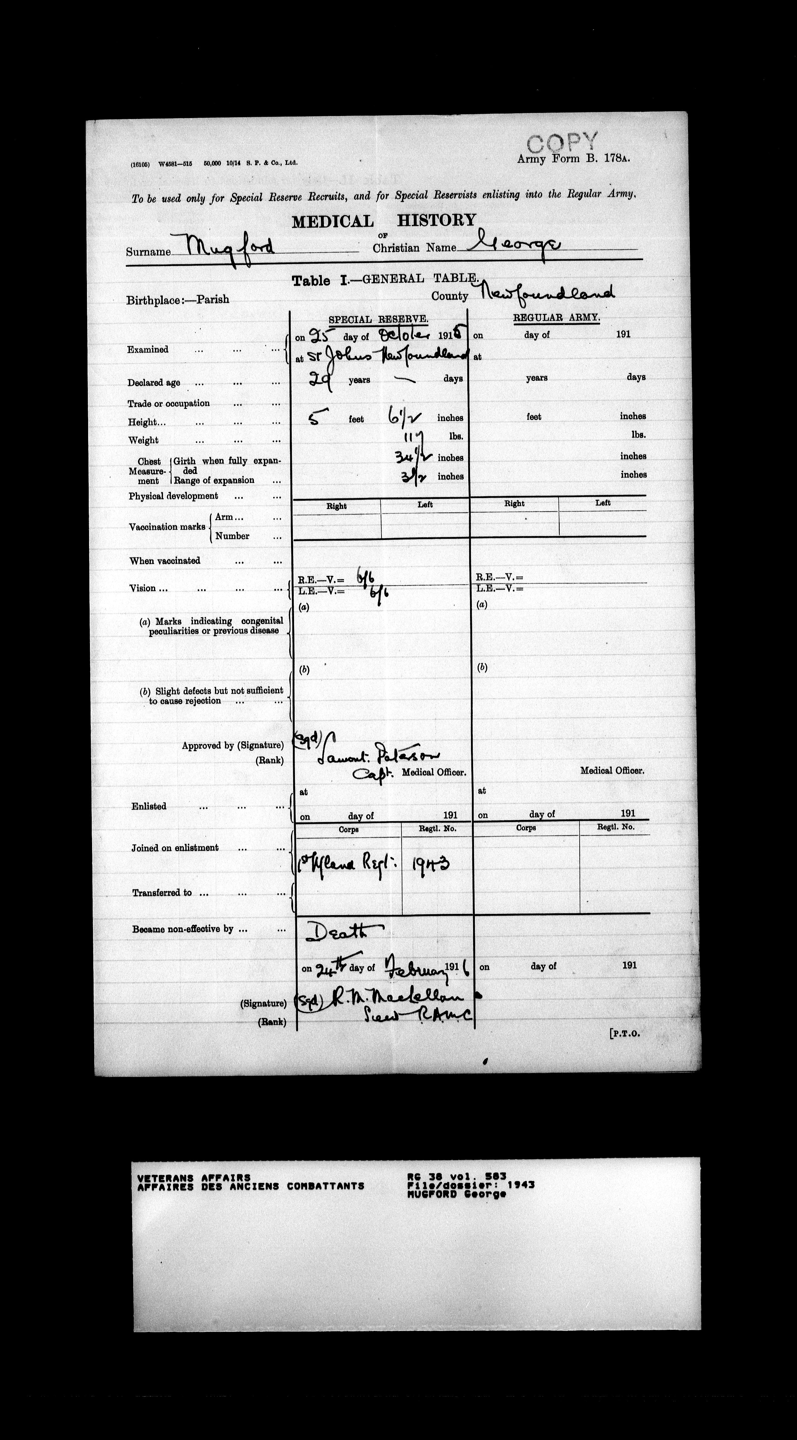Military service files for members of the Royal Newfoundland Regiment and bandsmen and the Newfoundland Forestry Corps (1914-1919) - 18126