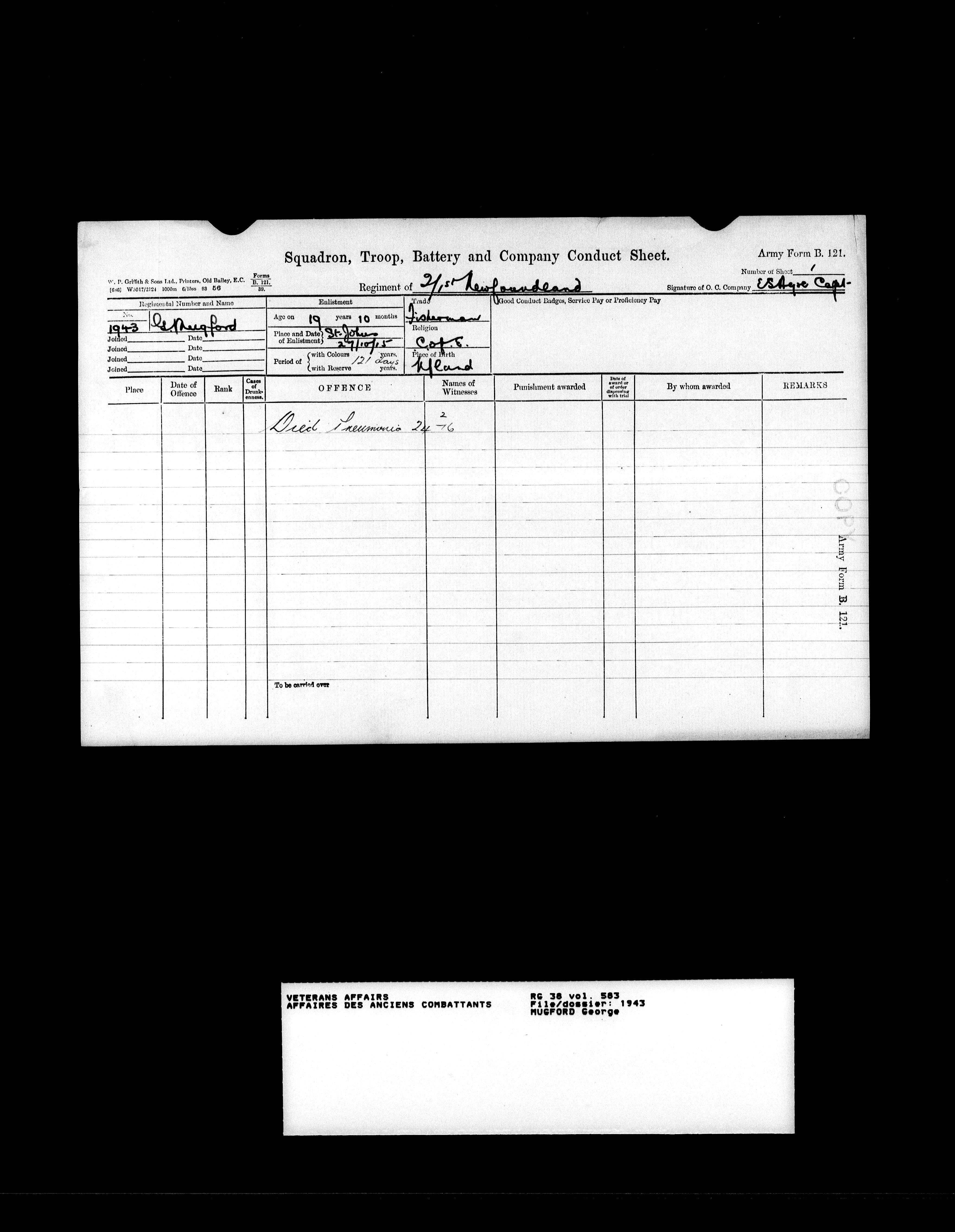 Military service files for members of the Royal Newfoundland Regiment and bandsmen and the Newfoundland Forestry Corps (1914-1919) - 18126