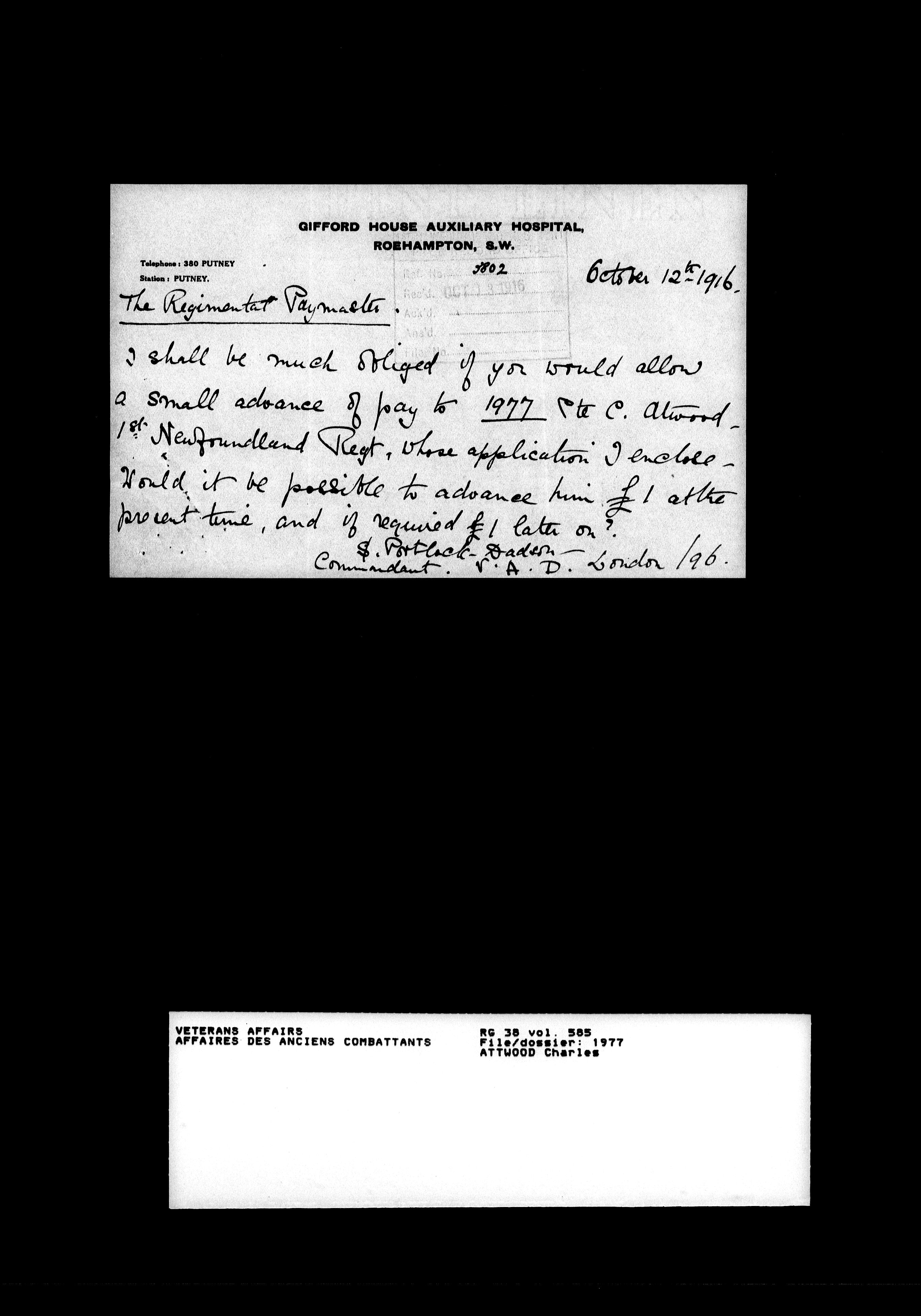 Military service files for members of the Royal Newfoundland Regiment and bandsmen and the Newfoundland Forestry Corps (1914-1919) - 18128